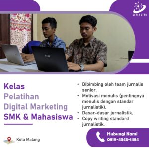 Bimbingan jurnalistik online di Malang adalah pilihan yang tepat bagi siapa saja yang ingin mengembangkan keterampilan menulis berita secara profesional, tetapi dengan cara yang lebih fleksibel dan praktis. Dengan metode pembelajaran yang interaktif dan pengajar yang berkompeten, pelatihan ini akan mempersiapkan peserta untuk menghadapi dunia jurnalistik yang semakin berkembang. Jika Anda tertarik untuk memulai atau memperdalam keterampilan menulis berita, Ikuti bimbingan jurnalistik secara online dengan pelatihan praktis dan fleksibel di Malang. Untuk informasi lebih lanjut dan pendaftaran, Hubungi 0819-4343-1484.