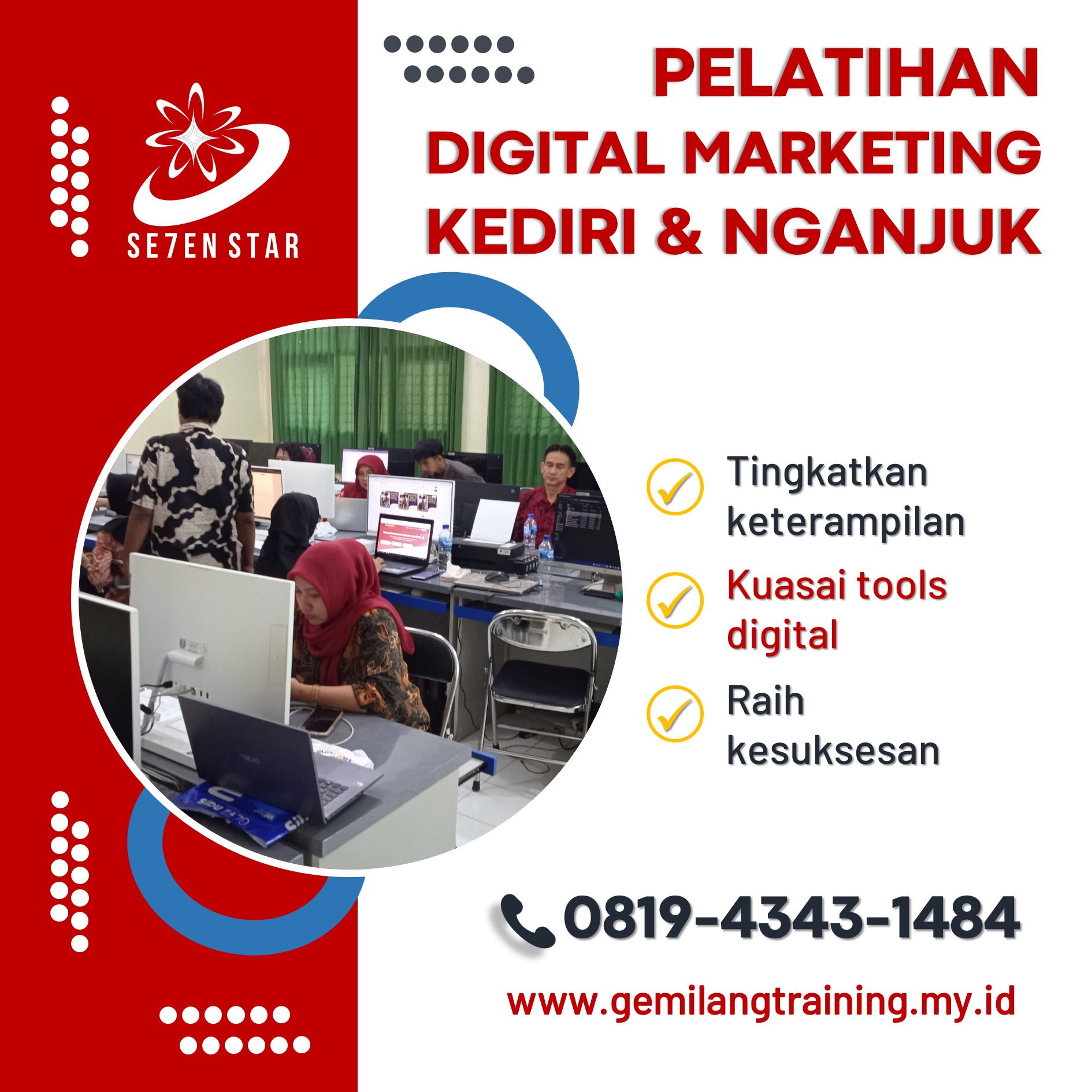 Mulai sekarang, Anda bisa mendapatkan keterampilan pemasaran yang dibutuhkan untuk bersaing di pasar digital yang semakin berkembang. Jangan ragu untuk hubungi 0819-4343-1484 untuk informasi lebih lanjut dan segera daftar untuk memulai perjalanan belajar Anda!