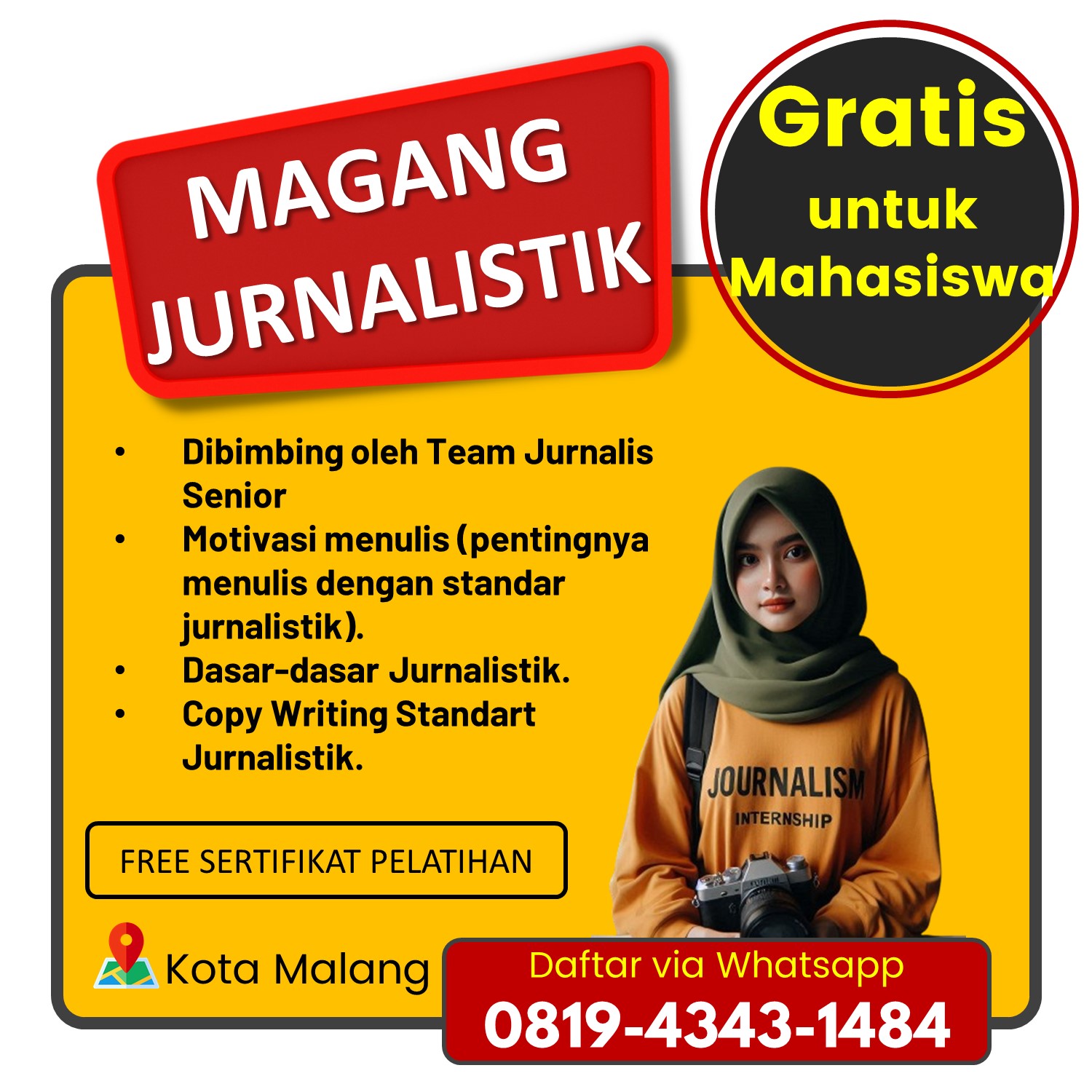 Hub 0819-4343-1484, Kelas Jurnalistik Intensif Mahasiswa Malang: Siapkan Dirimu Jadi Profesional