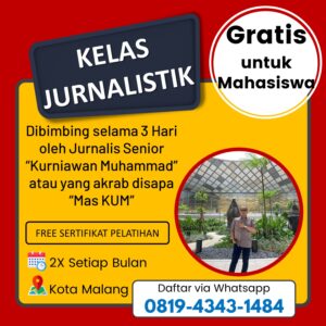Bagi Anda yang tertarik untuk meningkatkan kemampuan menulis artikel jurnalistik, hubungi 0819-4343-1484. Ikuti kelas menulis artikel jurnalistik Malang dan pelajari teknik-teknik yang akan membuat tulisan Anda lebih profesional dan sesuai dengan kebutuhan media online.