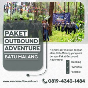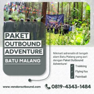 Jika Anda mencari cara untuk meningkatkan kekompakan tim dan produktivitas perusahaan, hubungi kami via WA 0819-4343-1484 untuk mendapatkan informasi lebih lanjut tentang jasa outbound di Batu. Bersama kami, wujudkan acara outbound yang tidak hanya seru, tetapi juga memberikan manfaat jangka panjang bagi perusahaan Anda. Dapatkan pengalaman yang mendebarkan dan berkesan, sambil membangun tim yang solid dan kompak.