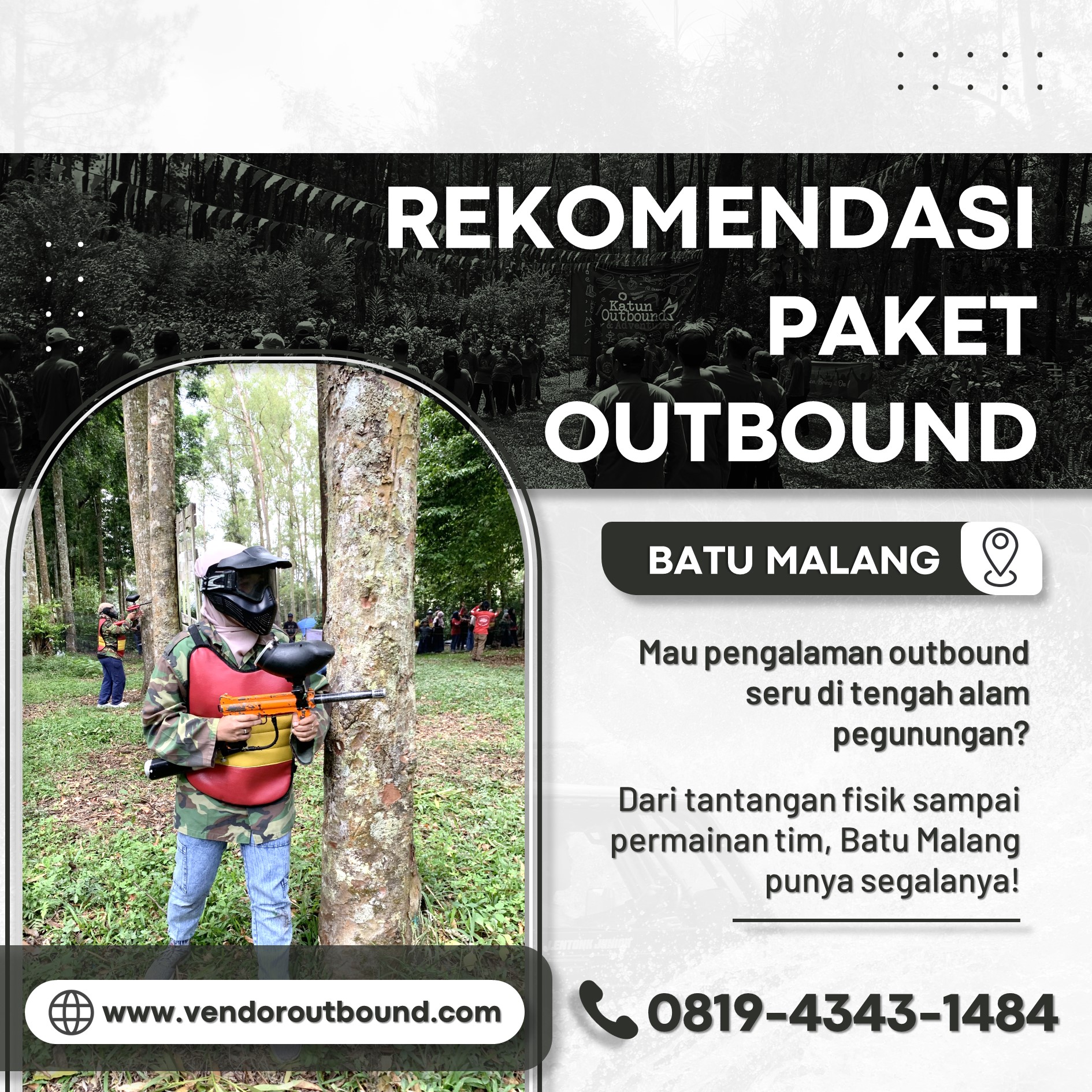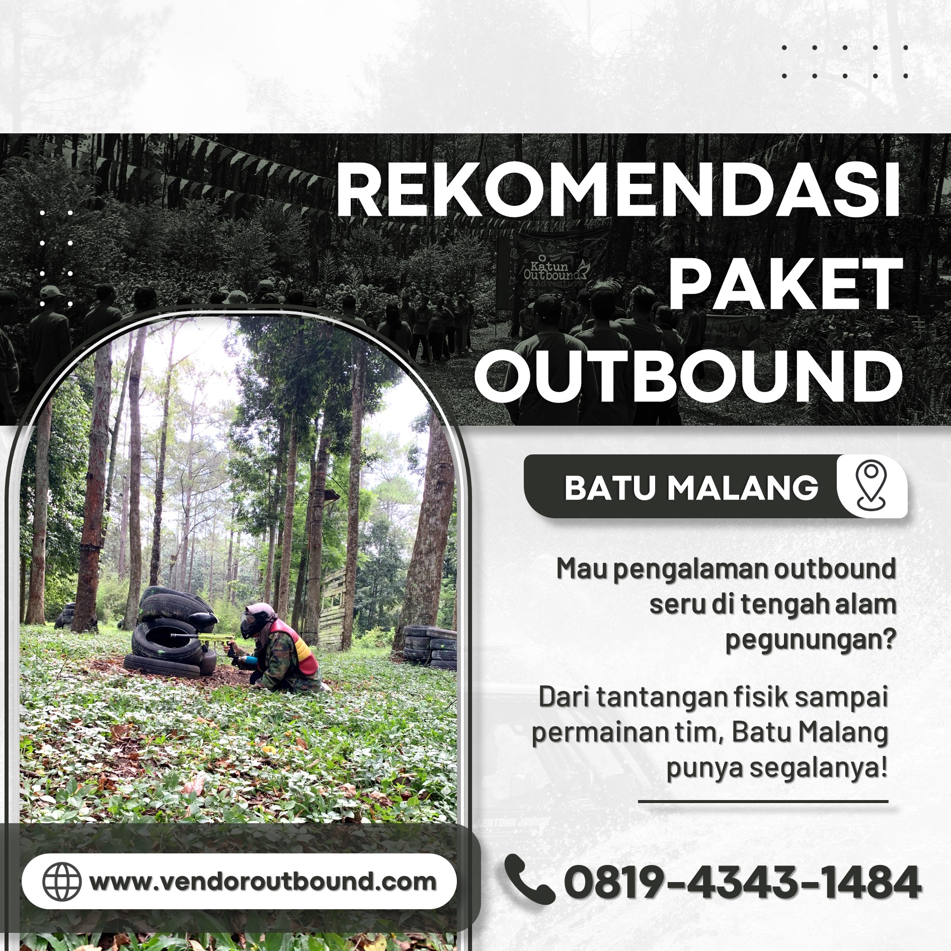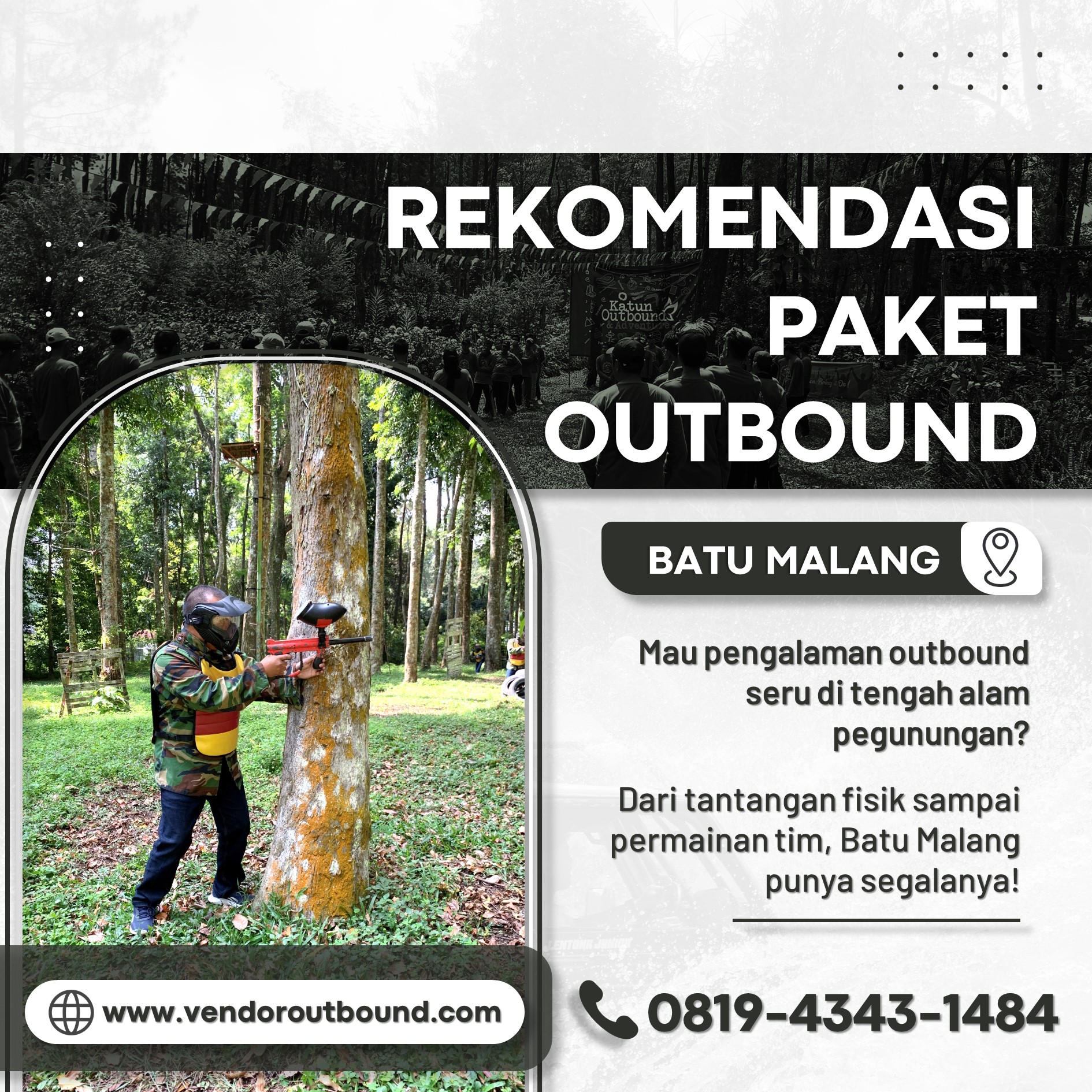 Temukan paket team building seru untuk perusahaan Anda di Malang dan wujudkan tim yang lebih solid dan produktif. Hubungi kami sekarang di 0819-4343-1484 untuk informasi lebih lanjut!
