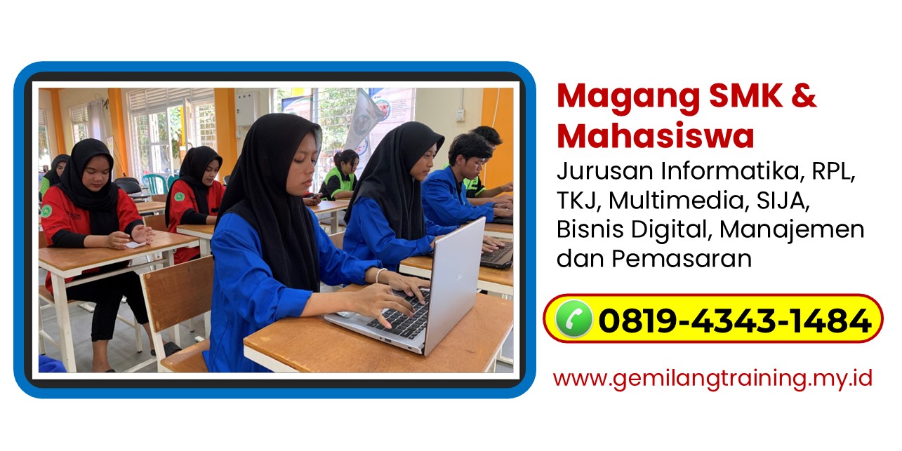 Jangan lewatkan kesempatan ini untuk memulai perjalanan karir Anda dengan landasan yang kuat. Daftar sekarang di Gemilang Training dan mulailah mengukir prestasi dalam dunia pemasaran. Untuk informasi lebih lanjut dan pendaftaran, hubungi kami di 0819-4343-1484. Ambil langkah pertama menuju masa depan yang cemerlang dengan memilih program guru magang pemasaran yang tepat di Kota Malang.