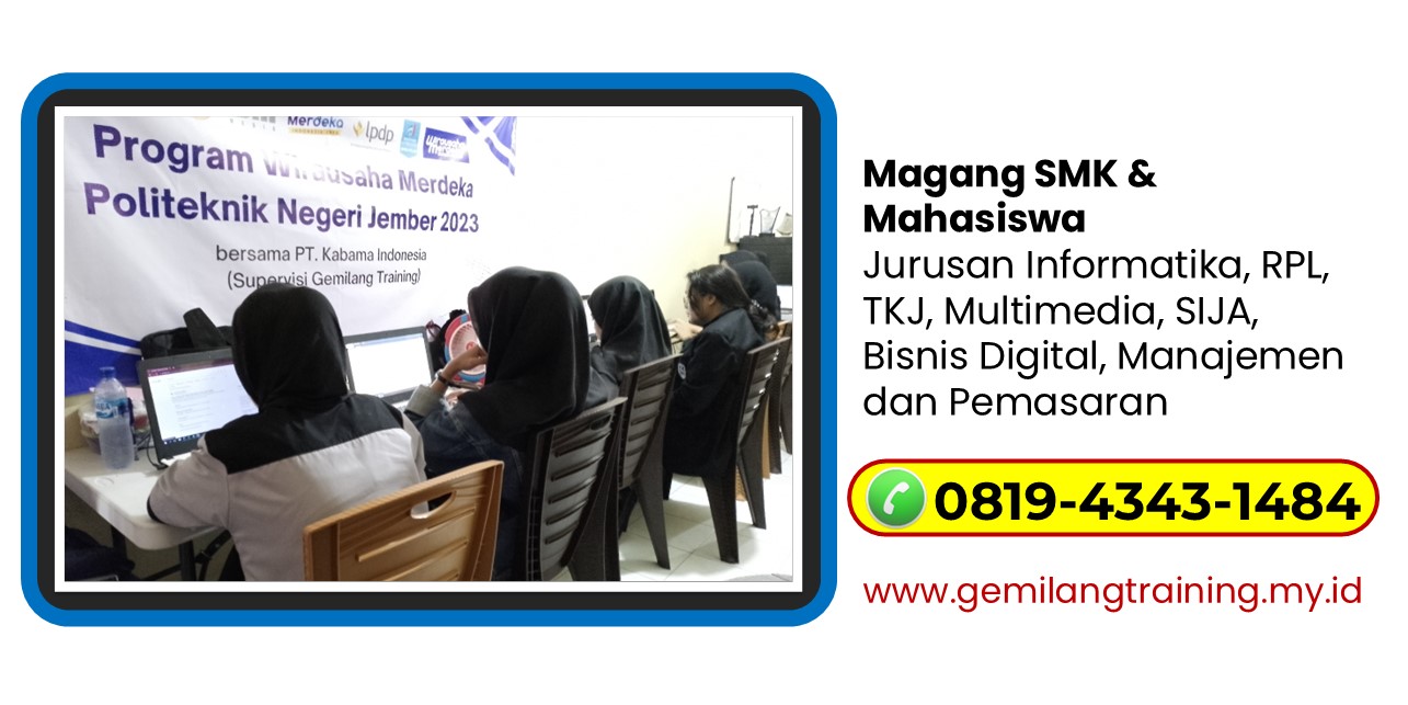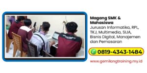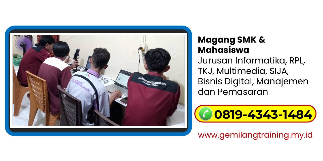Untuk memulai perjalanan Anda menuju masa depan karir yang cemerlang, pastikan untuk memilih program prakerin yang tepat. Dapatkan rekomendasi prakerin digital marketing terbaik di Blitar, Jawa Timur dan manfaatkan peluang besar untuk mengasah keterampilan Anda. Untuk informasi lebih lanjut dan pendaftaran, hubungi kami via WA 0819-4343-1484. Bergabunglah dengan Gemilang Training dan jadikan pengalaman prakerin Anda sebagai langkah awal menuju kesuksesan di bidang digital marketing.