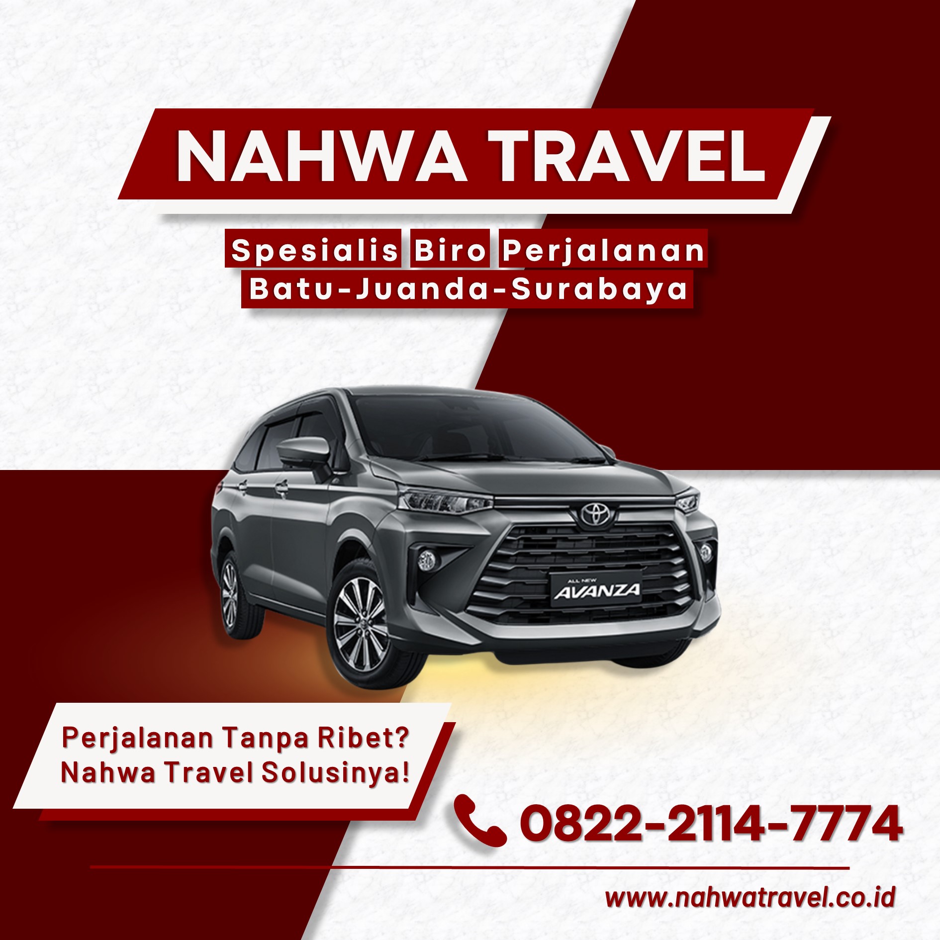 Pemesanan dapat dilakukan dengan menghubungi Nahwa Travel di nomor 0822-2114-7774 atau melalui website resmi. - Travel Surabaya Malang mana yang paling cepat?