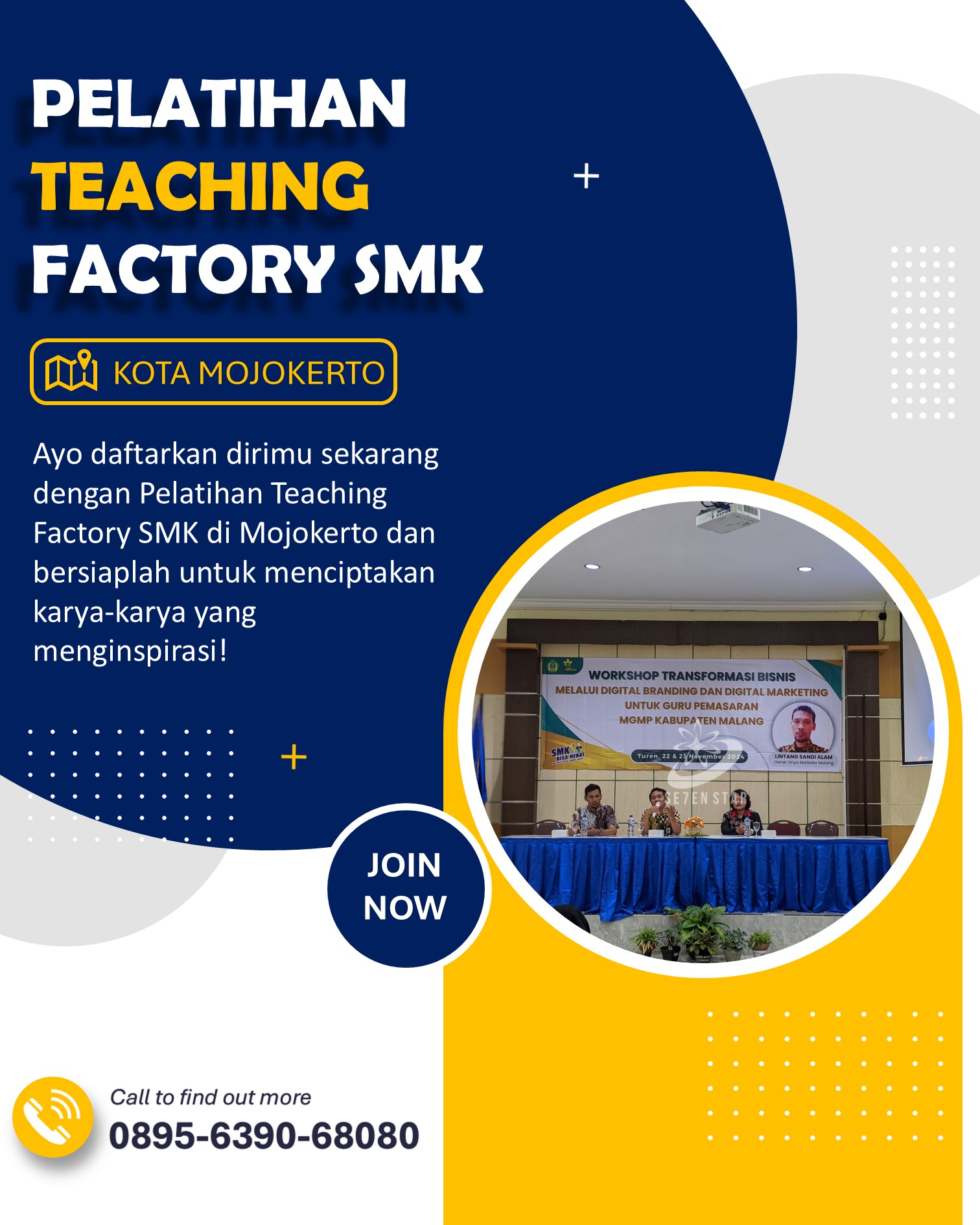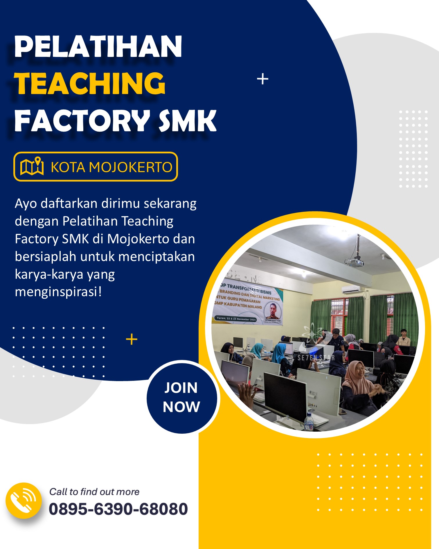 Bagi para guru yang ingin mengembangkan keterampilan kewirausahaan di bidang digital, Pelatihan Teaching Factory Bisnis Digital menjadi pilihan yang tepat. Program ini mengajarkan teknik-teknik bisnis digital secara langsung melalui praktik nyata, memungkinkan peserta untuk mempelajari aspek-aspek penting dari dunia bisnis online. Materi yang disampaikan mencakup topik-topik seperti pembuatan website bisnis, pemasaran melalui media sosial, hingga analisis data digital untuk meningkatkan kinerja bisnis. Dengan demikian, para peserta tidak hanya memahami teori, tetapi juga dapat menerapkannya dalam dunia nyata.