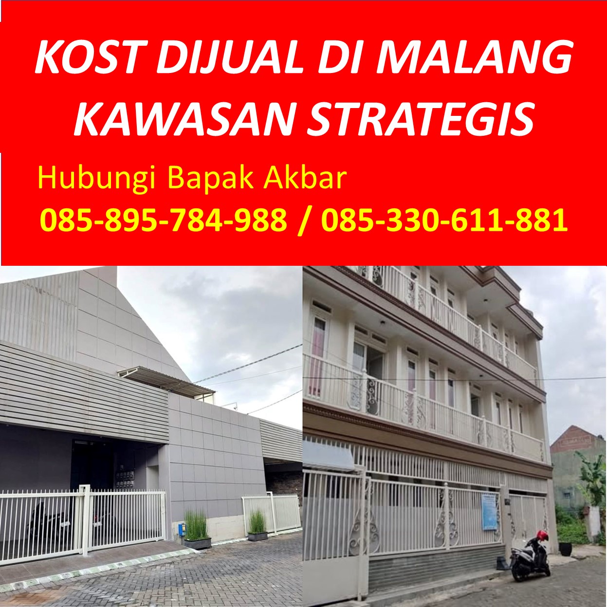 Bapak Akbar menyediakan beragam informasi tentang rumah kost dijual di Malang yang berada di kawasan strategis Bisa Jalan Kaki dari ke, Dekat dari ke, Sekitar, 1 Menit dari ke, 2 Menit dari ke, 5 Menit dari ke Universitas Muhammadiyah Malang Kampus 1, Universitas Muhammadiyah Malang Kampus 2, Universitas Muhammadiyah Malang Kampus 3, UMM Malang Kampus 1, UMM Malang Kampus 2, UMM Malang Kampus 3, Unmuh Malang Kampus 1, Unmuh Malang Kampus 2, Unmuh Malang Kampus 3, Universitas Brawijaya Malang Kampus 1, Universitas Brawijaya Malang Kampus 2, UB Malang Kampus 1, UB Malang Kampus 2, Unibraw Malang Kampus 1, Unibraw Malang Kampus 2, Universitas Negeri Malang Kampus 1, Universitas Negeri Malang Kampus 2, UM Malang Kampus 1, UM Malang Kampus 2, IKIP Malang Kampus 1, IKIP Malang Kampus 2, Universitas Islam Negeri Maulana Malik Ibrahim Malang Kampus 1, Universitas Islam Negeri Maulana Malik Ibrahim Malang Kampus 2, Universitas Islam Negeri Maulana Malik Ibrahim Malang Kampus 3, UIN Malang Kampus 1, UIN Malang Kampus 2, UIN Malang Kampus 3, IAIN Malang Kampus 1, IAIN Malang Kampus 2, IAIN Malang Kampus 3, Politeknik Negeri Malang, Polinema Malang, Poltek Malang, Universitas Ma Chung Malang