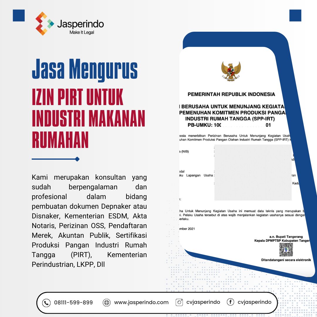 IZIN PIRT UNTUK INDUSTRI MAKANAN RUMAHAN