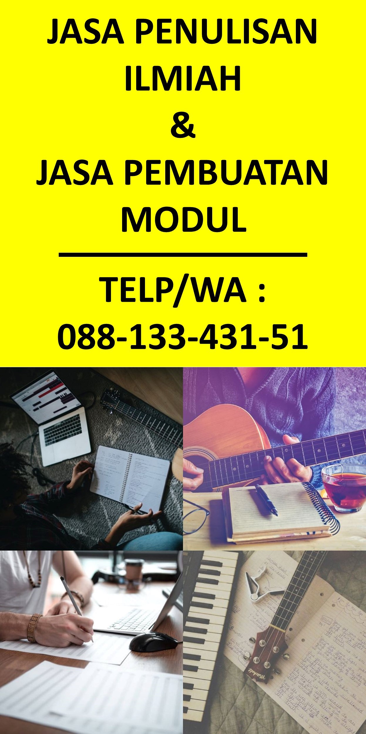 Kami juga menerima jasa pembuatan desain poster ilmiah & jasa pembuatan modul (bahan ajar, rancangan pembelajaran/RPP, modul pelatihan, dsb)