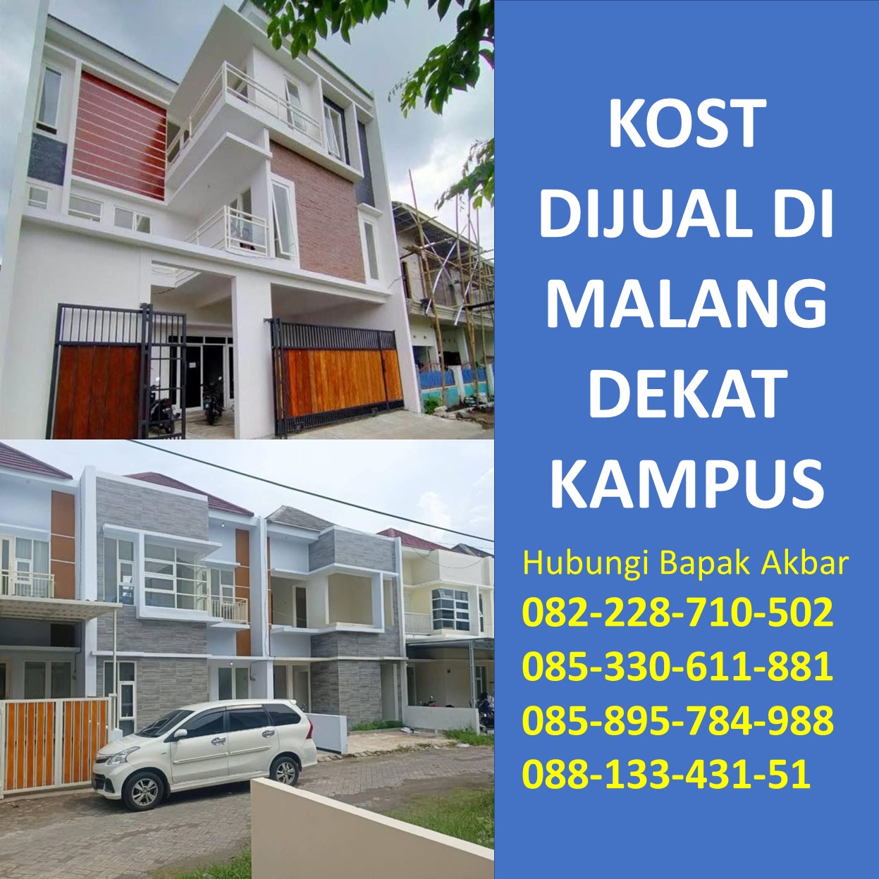 Bapak Akbar menyediakan beragam informasi tentang rumah kost dijual di Malang yang berada di kawasan strategis Bisa Jalan Kaki dari ke, Dekat dari ke, Sekitar, 1 Menit dari ke, 2 Menit dari ke, 5 Menit dari ke Universitas Muhammadiyah Malang Kampus 1, Universitas Muhammadiyah Malang Kampus 2, Universitas Muhammadiyah Malang Kampus 3, UMM Malang Kampus 1, UMM Malang Kampus 2, UMM Malang Kampus 3, Unmuh Malang Kampus 1, Unmuh Malang Kampus 2, Unmuh Malang Kampus 3, Universitas Brawijaya Malang Kampus 1, Universitas Brawijaya Malang Kampus 2, UB Malang Kampus 1, UB Malang Kampus 2, Unibraw Malang Kampus 1, Unibraw Malang Kampus 2, Universitas Negeri Malang Kampus 1, Universitas Negeri Malang Kampus 2, UM Malang Kampus 1, UM Malang Kampus 2, IKIP Malang Kampus 1, IKIP Malang Kampus 2, Universitas Islam Negeri Maulana Malik Ibrahim Malang Kampus 1, Universitas Islam Negeri Maulana Malik Ibrahim Malang Kampus 2, Universitas Islam Negeri Maulana Malik Ibrahim Malang Kampus 3, UIN Malang Kampus 1, UIN Malang Kampus 2, UIN Malang Kampus 3, IAIN Malang Kampus 1, IAIN Malang Kampus 2, IAIN Malang Kampus 3, Politeknik Negeri Malang, Polinema Malang, Poltek Malang, Universitas Ma Chung Malang
