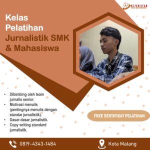 Mengikuti kelas jurnalistik mahasiswa pemula di Malang adalah langkah yang tepat bagi mahasiswa yang ingin berkarir di dunia media. Dengan pelatihan yang fokus pada keterampilan jurnalistik praktis dan profesional, peserta akan dipersiapkan untuk menghadapi tantangan dunia media. Jangan lewatkan kesempatan untuk membangun karir jurnalistik yang sukses. Hubungi 0819-4343-1484 untuk mendaftar dan mulai perjalanan Anda di dunia media sekarang juga.