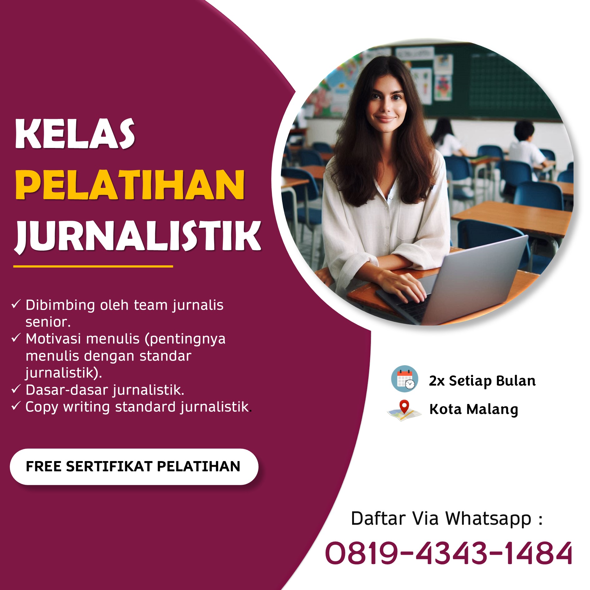 Hub 0819-4343-1484, Bagi siswa SMK yang memiliki minat di bidang media, mengikuti kursus jurnalistik pemula SMK Malang adalah langkah awal yang tepat untuk mengasah keterampilan menulis berita. Dunia jurnalistik menawarkan tantangan menarik bagi mereka yang ingin menyampaikan informasi dengan cara yang akurat, menarik, dan profesional. Kursus ini dirancang untuk memberikan dasar-dasar yang kokoh, membuka peluang bagi para pemula untuk memahami seluk-beluk penulisan berita yang baik dan benar.