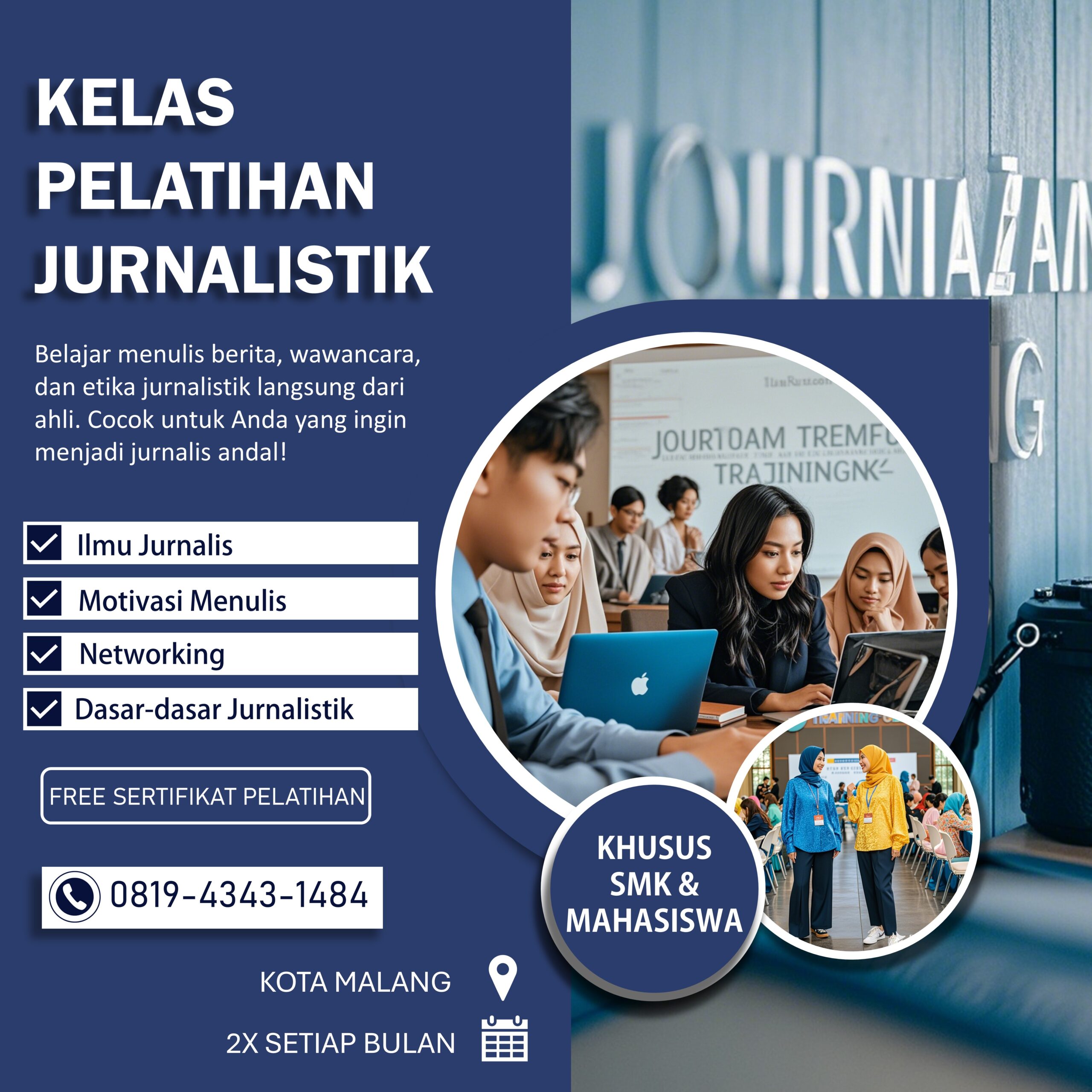 Hub 0819-4343-1484¸Menulis berita cetak yang menarik dan akurat membutuhkan lebih dari sekadar kemampuan berbahasa. Ini adalah seni yang menggabungkan teknik penulisan yang tepat dengan pemahaman mendalam tentang peristiwa yang terjadi di sekitar kita. Bagi Anda yang ingin mengasah keterampilan ini, Kursus menulis berita cetak di Malang menawarkan pelatihan praktis yang dirancang untuk memperkenalkan dan memperdalam teknik-teknik jurnalistik yang esensial.
