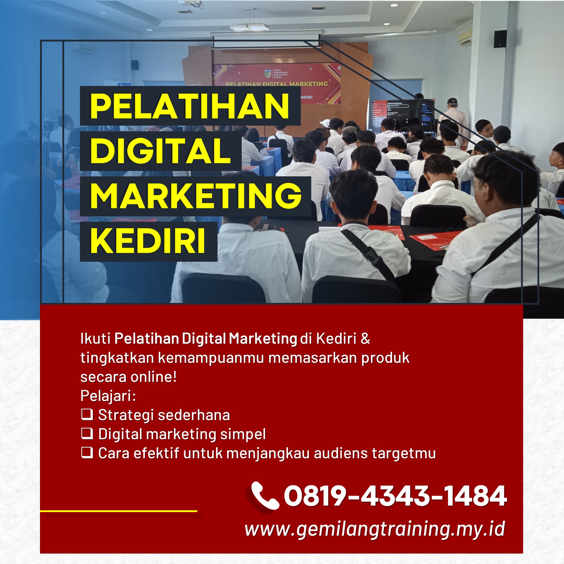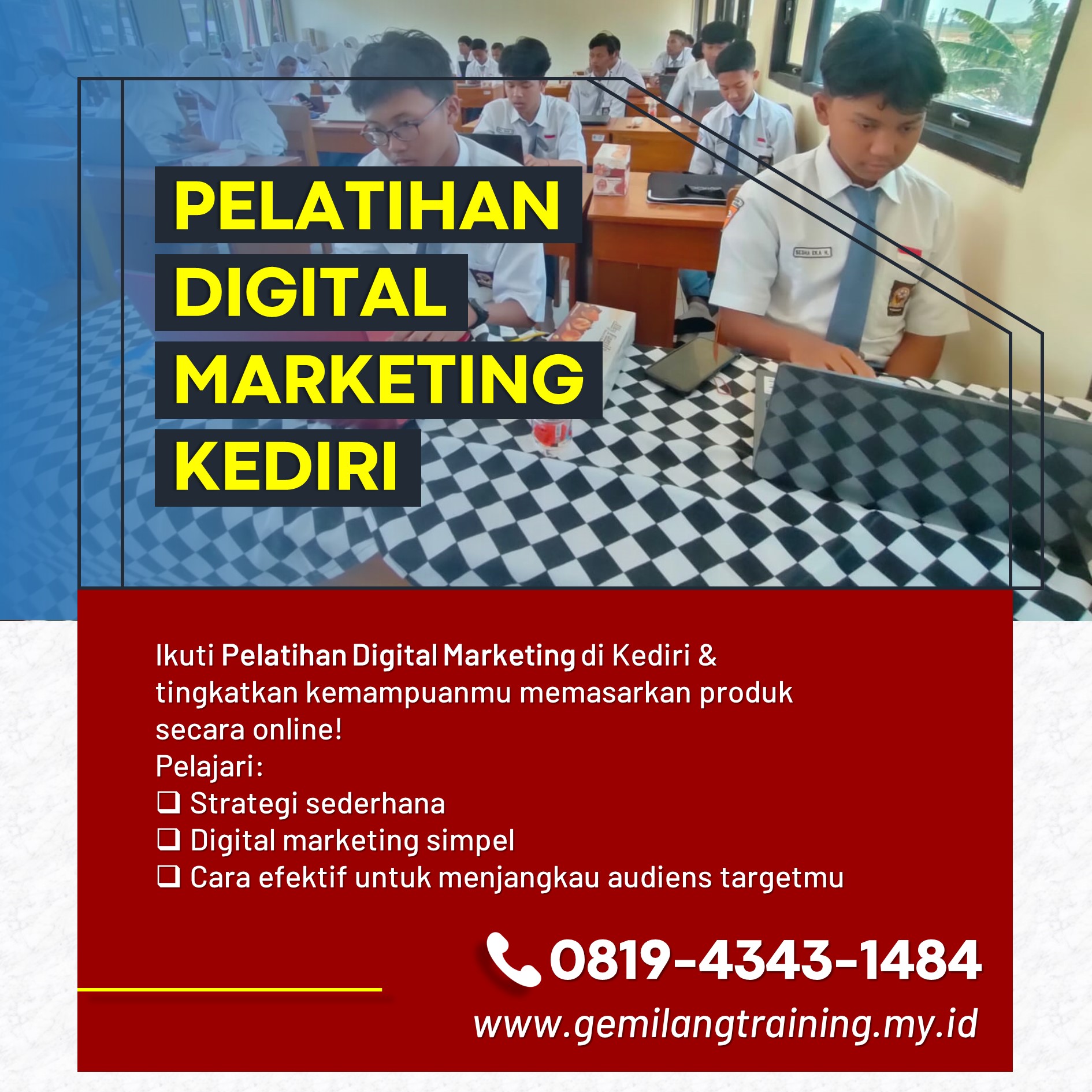 Daftar hari ini dan jangan lewatkan kesempatan untuk meningkatkan kemampuan Anda di dunia bisnis online. Hubungi 0819-4343-1484 untuk informasi lebih lanjut dan pendaftaran.