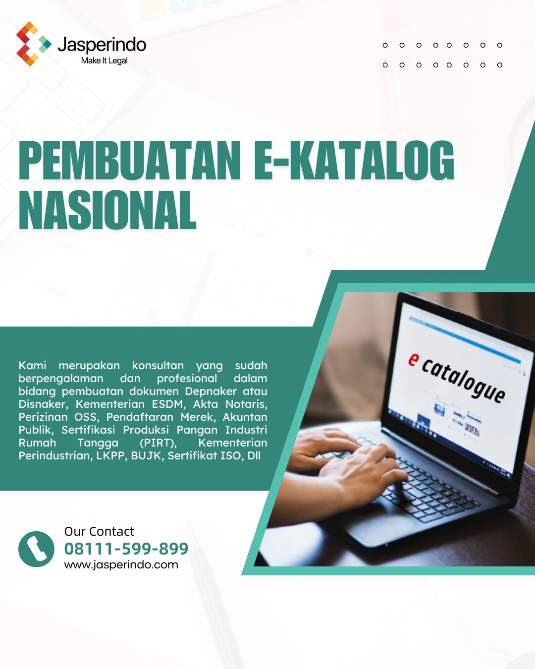 E-Katalog Nasional adalah katalog elektronik yang berisi berbagai produk dan jasa yang dibutuhkan pemerintah. Katalog ini disusun dan dikelola oleh Lembaga Kebijakan Pengadaan Barang/Jasa Pemerintah (LKPP).