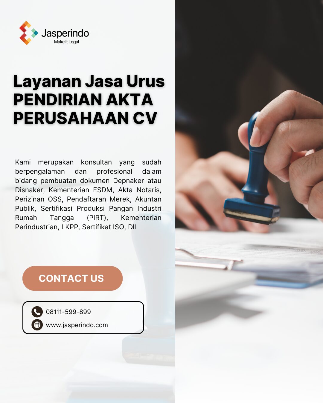 Akta pendirian CV adalah dokumen resmi yang berisi informasi penting terkait pendirian sebuah Commanditaire Vennootschap (CV). Akta ini dibuat oleh notaris.