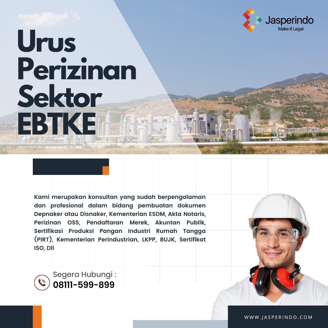 Untuk menjalankan kegiatan di Sektor EBTKE ini, perusahaan anda harus terdaftar dan memiliki SKT Panas Bumi / EBTKE (Energi Baru Terbarukan)