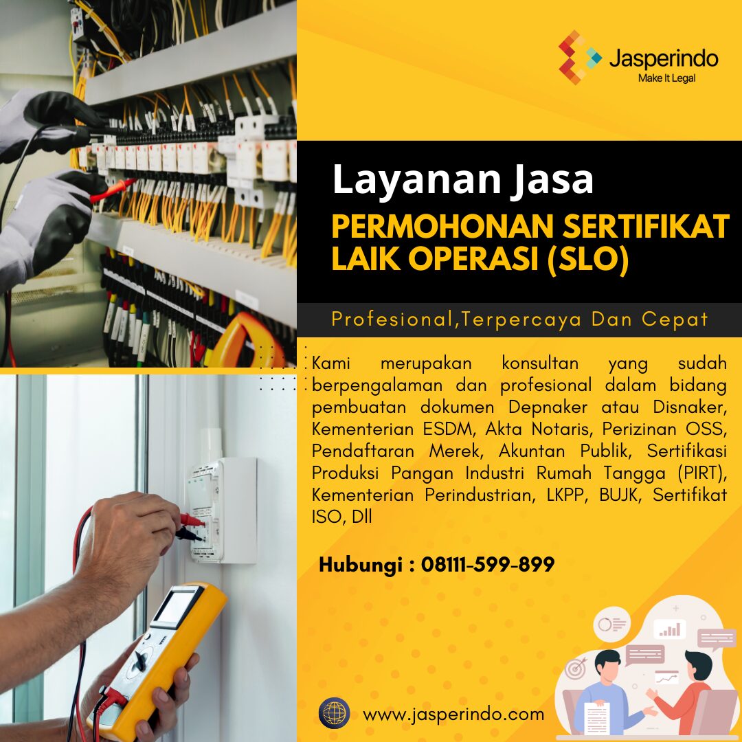 SLO merupakan sertifikat yang menjadi bukti bahwa suatu instalasi listrik sudah memenuhi persyaratan untuk beroperasi atau sudah layak diberi tegangan listrik.
