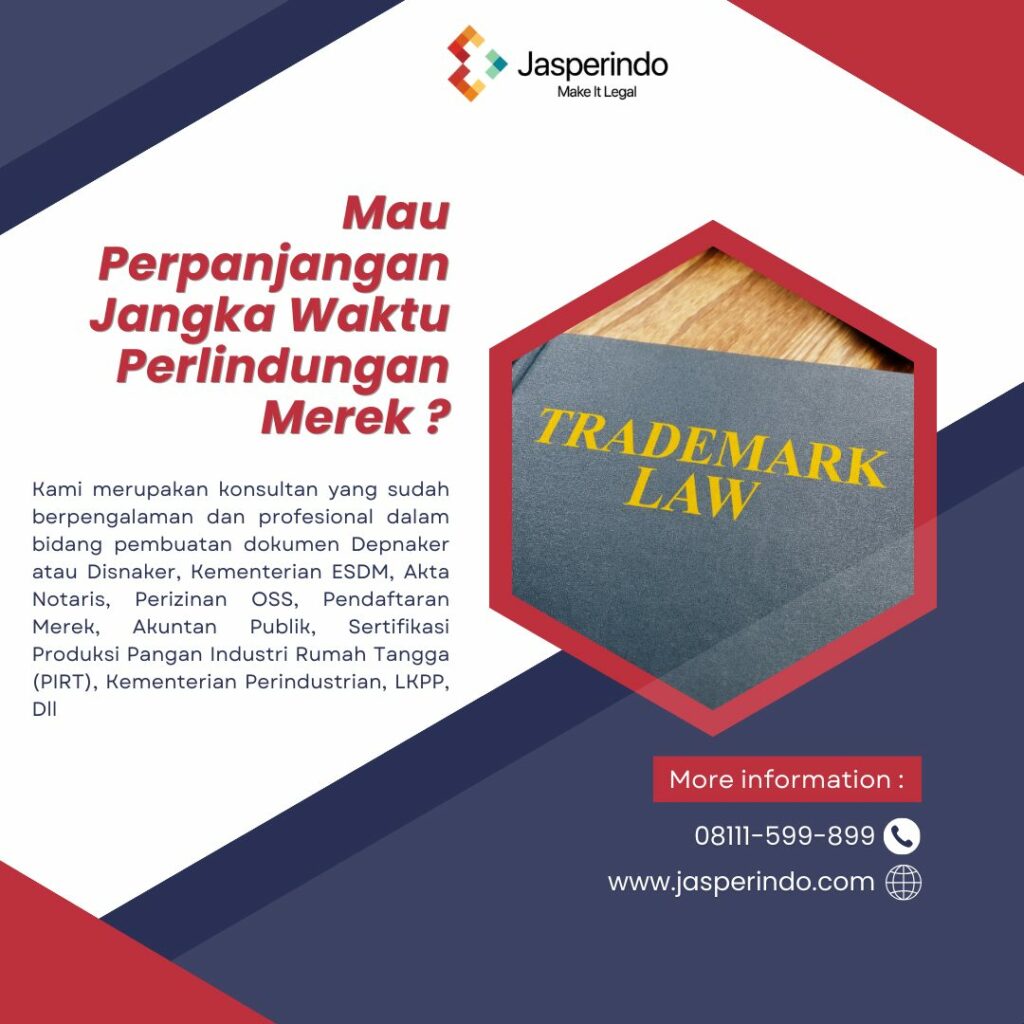 Meski perlindungan merek hanya 10 tahun, namun pemilik merek dapat memperpanjang jangka waktu perlindungan selama 10 tahun lagi. Permohonan perpanjangan perlindungan merek dapat diajukan secara elektronik atau non-elektronik oleh pemilik Merek atau Kuasanya dengan memakai Bahasa Indonesia.