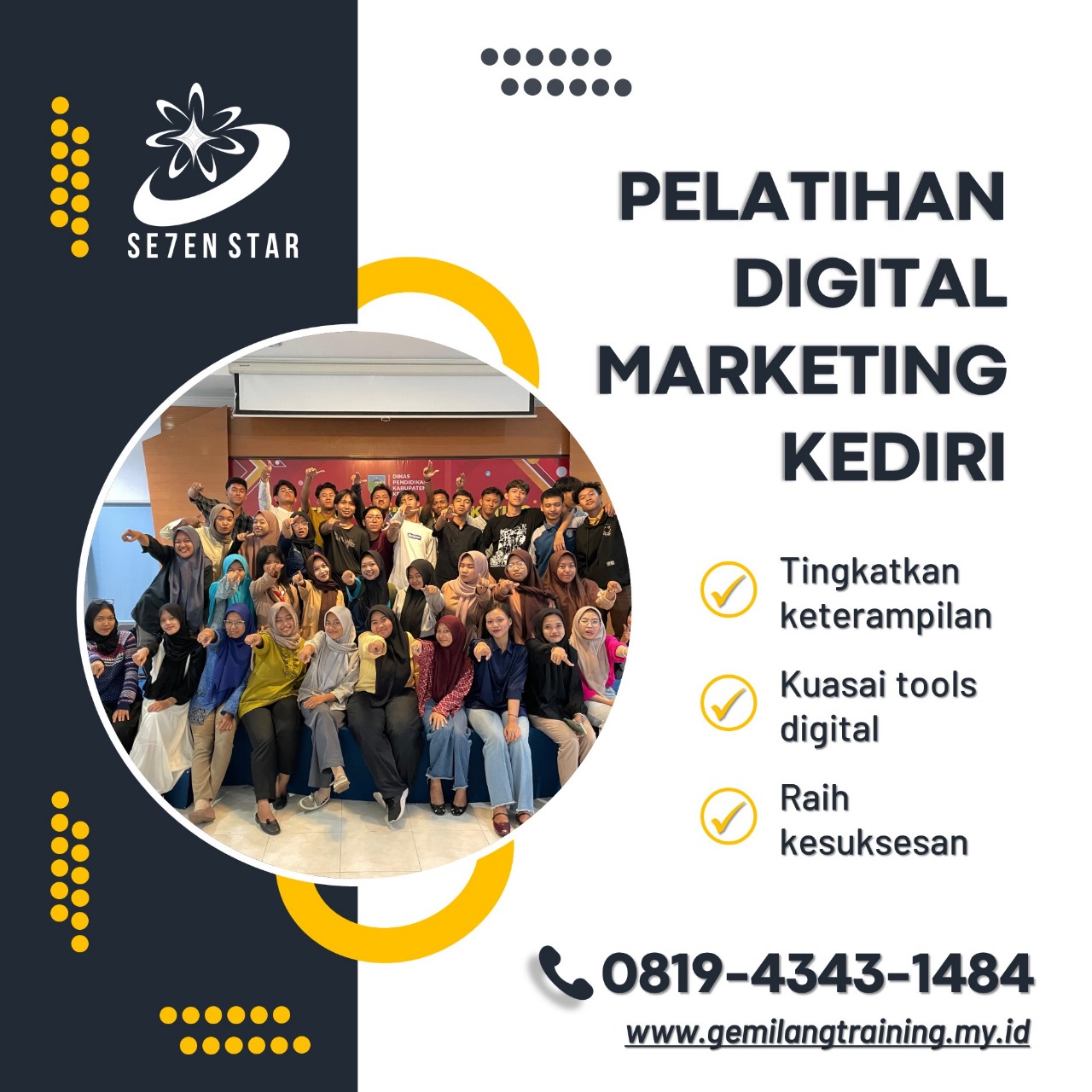 Hub 0819-4343-1484, Dalam menghadapi tantangan di era digital, mahasiswa perlu memiliki keterampilan yang relevan untuk bersaing di dunia kerja. Program Digital Marketing Mahasiswa Nganjuk adalah solusi tepat bagi mahasiswa yang ingin mengasah kemampuan mereka dalam bidang pemasaran online. Program ini dirancang untuk memberikan wawasan dan keterampilan praktis yang diperlukan agar peserta dapat beradaptasi dengan cepat di pasar kerja yang kompetitif.