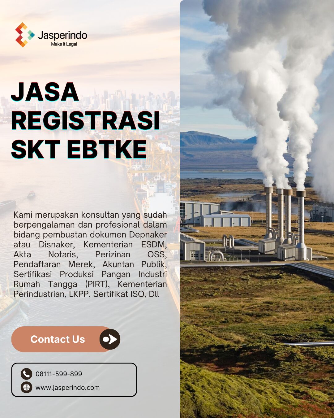 SKT Panas Bumi (EBTKE) adalah Surat Izin Usaha Penunjang Panas Bumi yang dikeluarkan oleh Direktorat Jenderal Energi Baru Terbarukan dan Konservasi Energi (EBTKE). SKT ini merupakan izin yang wajib dimiliki oleh perusahaan yang bergerak di bidang penunjang panas bumi.