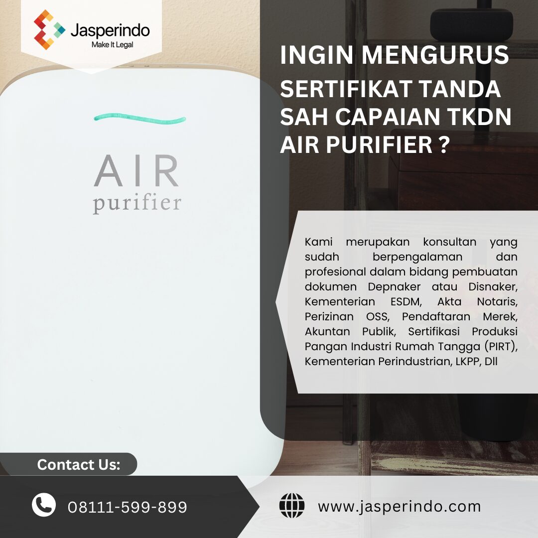 SERTIFIKAT TANDA SAH CAPAIAN TKDN AIR PURIFIER
