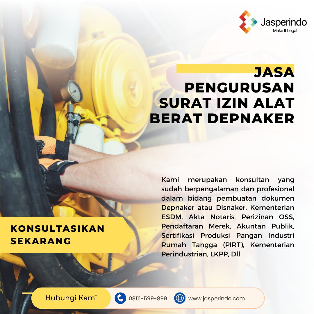#peraturanperusahaan #pengesahanperaturanperusahaan #wlkp #suratizinalat #sia #sio #izindisnaker #izindepnaker #jasaurusizindepanaker #suratizinalatberat #izinalatangkatdanangkut #izinalatpesawatproduksi #konsultandepnaker #izinalatdepnaker #izinlift #izingenset #izincrane #izinforklift #izintanki #suratizindisnaker #wajiblaporketenagakerjaan #izinalat2025