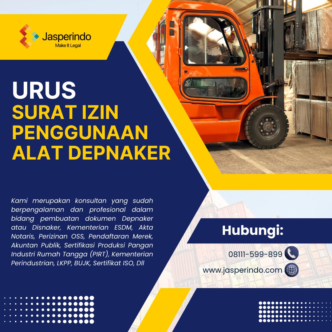 #jasaurusperizinandisnaker #depnaker #disnaker #peraturanperusahaan #pengesahanpp #wlkp #izinliftbarang #izinpengunaanlift #suratizinalat #izinalatberat #konsultandepnaker #konsultansuratizinalat #jasapengurusanizinliftpenumpang #izinalatboiler #izinalatcrane #izinalatgenset #izinalatkompresor #izinalatkemenaker #izinalatforklift #suratizinoperator #sertifikatk3 #izinusahapenyediatenagakerja #izinoutsourching #izink3alat #izinalatberat #perizinandepnaker #riksauji #pengujianalatk3 #perizinandisnaker #sio #suratijinoperator #suratizinoperator #ahlik3umum #ahlik3spesialis