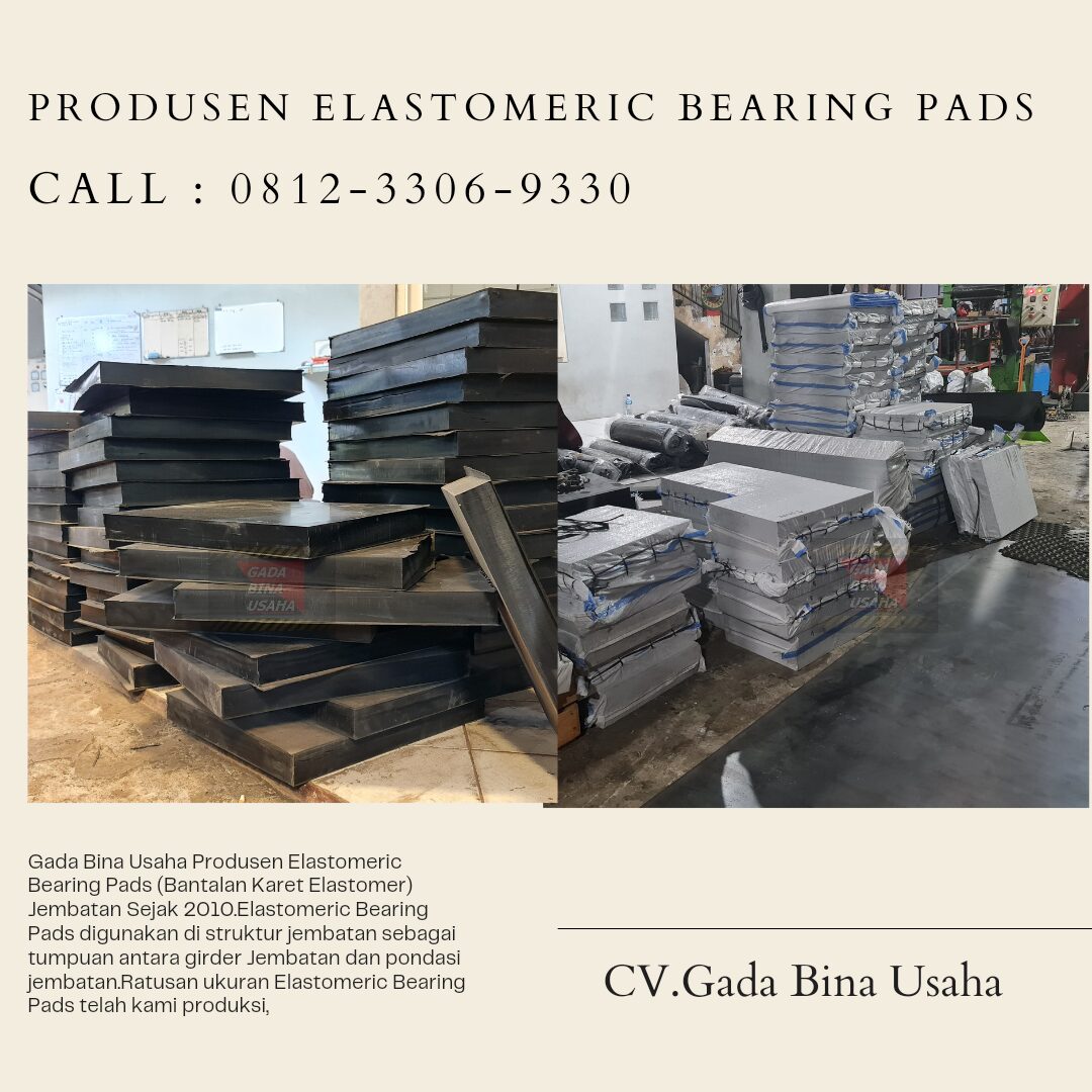 Bantalan Karet Jembatan atau disebut juga Rubber Elastomeric Bearing Pads dapat memesannya kepada kami Gada Bina Usaha dengan kualitas produk yang terbukti luas, lulus uji, dan harga yang sangat kompetitif. Penggunaan dimensi yang umum kami produksi selama lebih dari 10 tahun, dapat Anda cek pada website kami terkait Ukuran Lengkap Elastomeric Bearing Pads. Selain memproduksi bantalan karet jembatan, kami juga menyediakan produk jembatan lainnya, seperti anchor jembatan, asphaltic plug, expansion joint model compression seal, rubber sheet bearing, dsbnya.