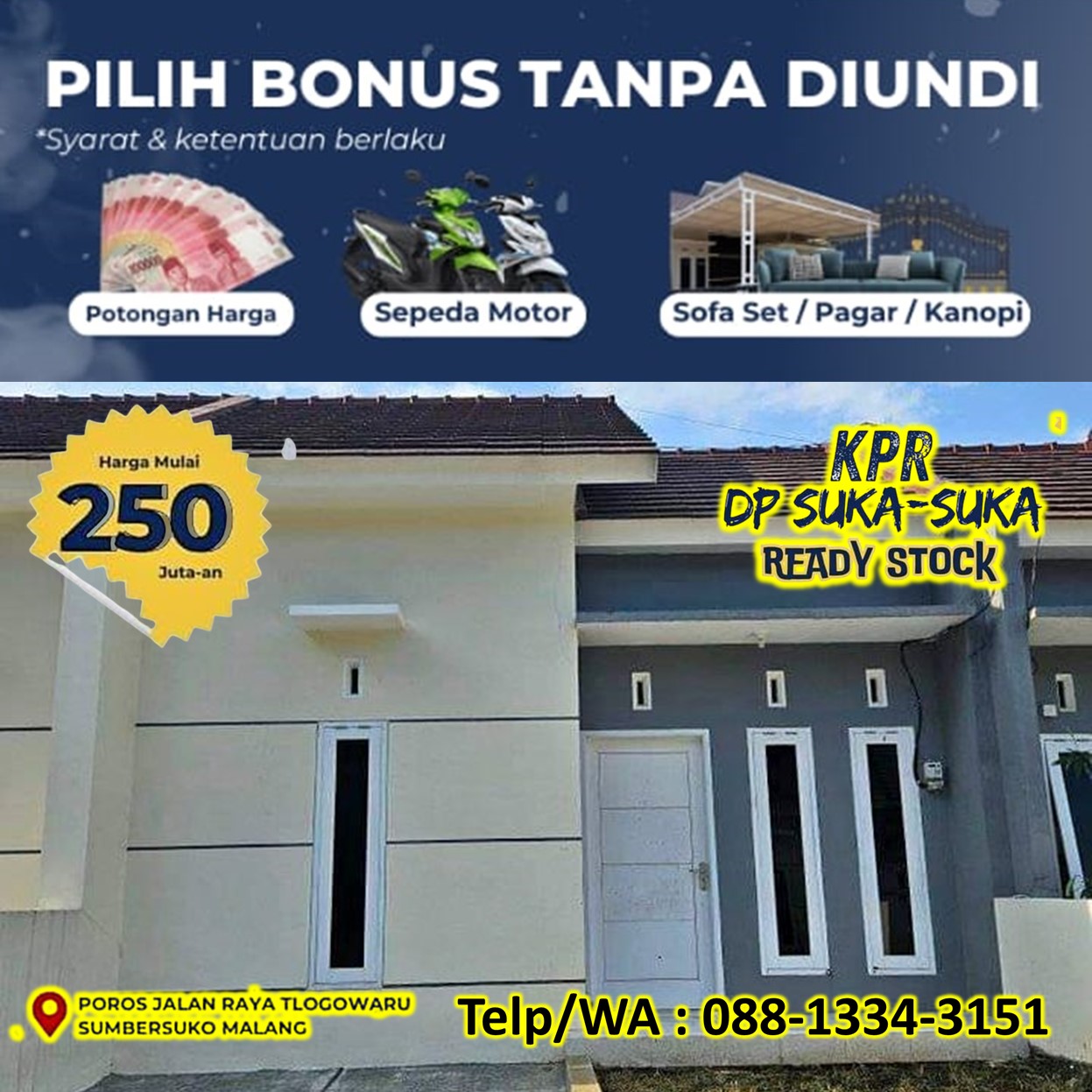Telp/WA 088-1334-3151 Perumahan Murah Malang siap huni Poros Jalan Raya Malang