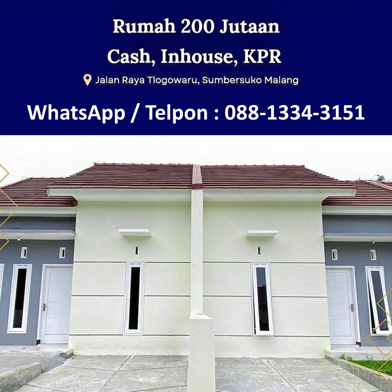 Hanya dengan harga murah mulai 200 jutaan Anda sudah bisa punya rumah kualitas premium dengan lokasi strategis di poros jalan raya Tlogowaru