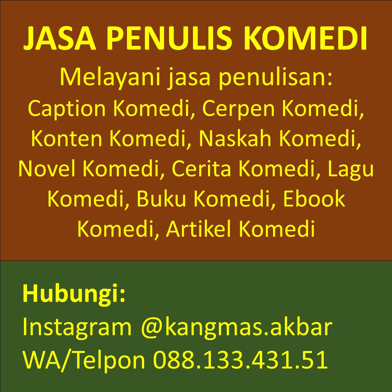 Telp/WA 0881.3343.151 Jasa Penulis Cerpen Lucu Komedi Terdekat