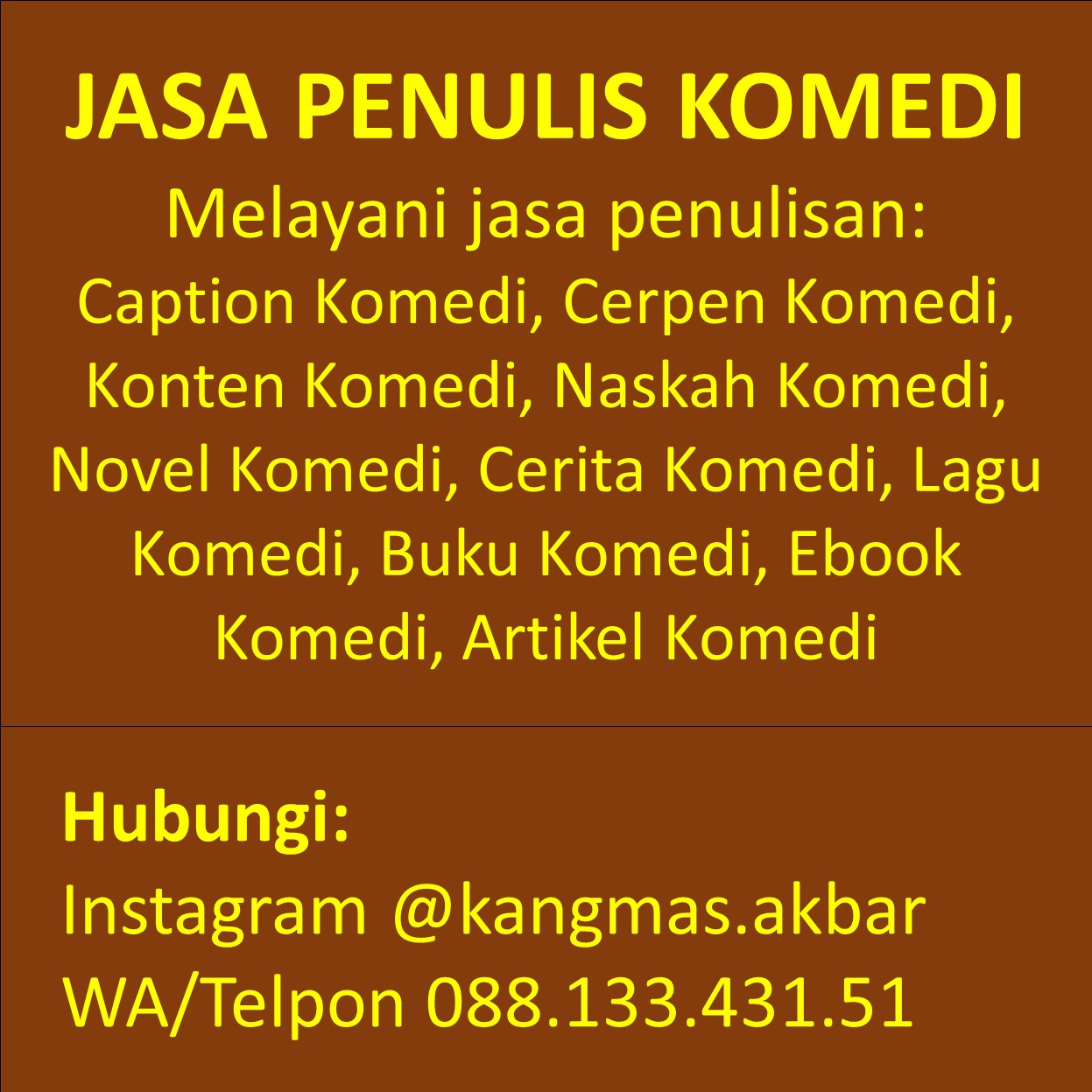 Telp/WA 0881.3343.151 Jasa Penulis Konten Lucu Komedi Terdekat