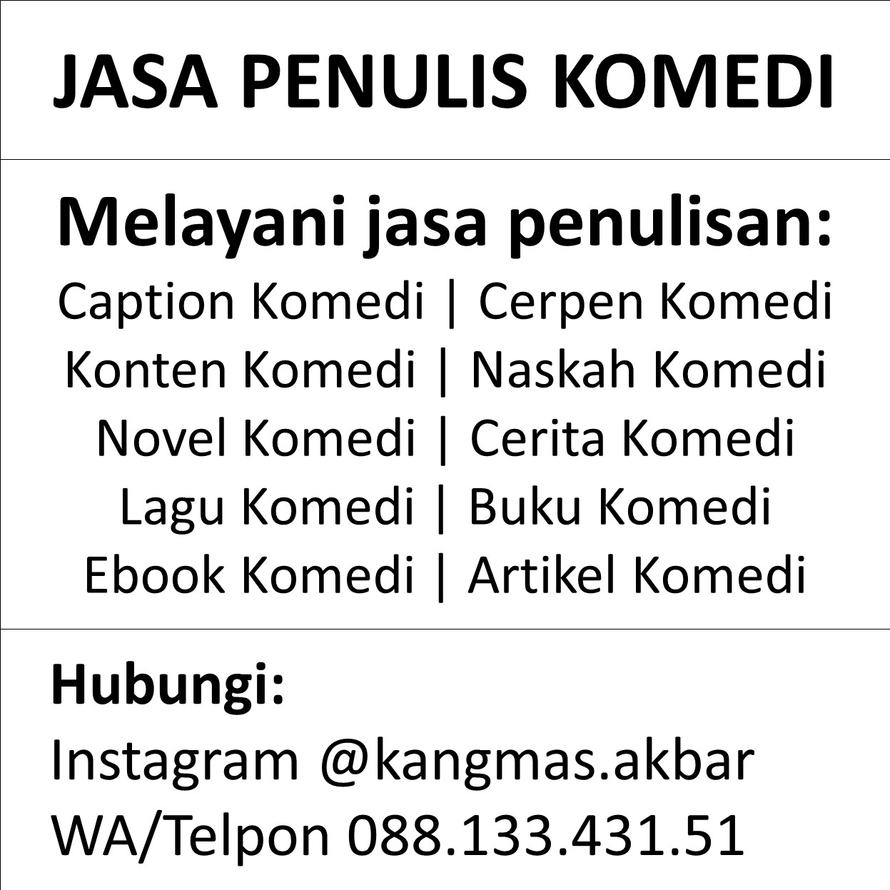 JASA PENULIS KOMEDI / COMEDY WRITER