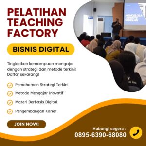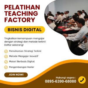 Jangan lewatkan kesempatan untuk mengembangkan diri dan meningkatkan kompetensi profesional. Hubungi kami via Wa 0895-6390-68080 atau klik https://wa.me/63895639068080 untuk informasi lebih lanjut dan pendaftaran. Segera ikuti Training Teaching Factory Kediri dan persiapkan diri Anda untuk menjadi guru yang siap menghadapi tantangan masa depan!
