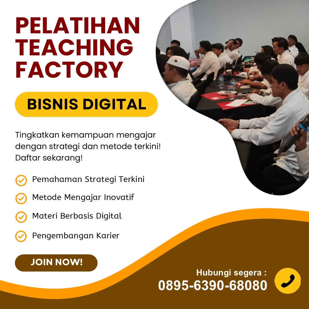 Training teaching factory di Kediri hadir dengan pembelajaran praktis. Tingkatkan keterampilan Anda dalam berbagai bidang, dari manajemen bisnis hingga pemasaran digital, dengan materi yang dirancang khusus untuk memperkaya kompetensi guru. Program ini memungkinkan para peserta untuk belajar langsung dari para ahli di bidangnya, dengan metode pengajaran yang interaktif dan aplikatif. Sebagai peserta, Anda tidak hanya akan mendapatkan pemahaman teori, tetapi juga keterampilan praktis yang bisa diterapkan langsung dalam pembelajaran di sekolah.
