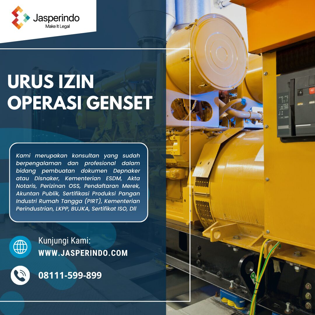 Penggunaan Genset di bawah kapasitas 200 KVA tidak perlu izin operasional, melainkan hanya terdaftar dan harus melaporkan kepemilikan.