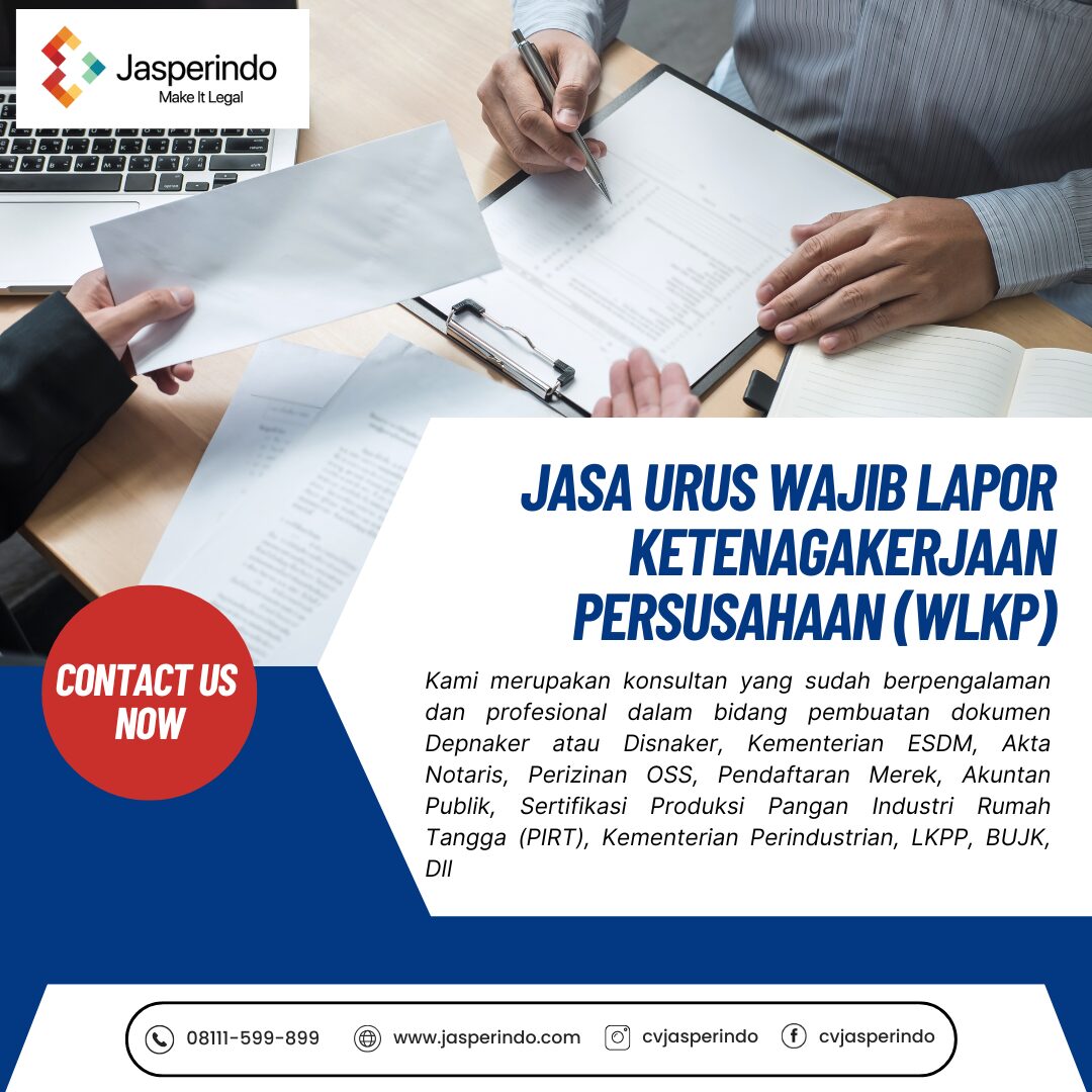 #wlkp #wajiblaporketenagakerjaanperusahaan #pp #peraturanperusahaan #jasaurusperizinandisnaker #depnaker #disnaker #peraturanperusahaan #pengesahanpp #wlkp #izinliftbarang #izinpengunaanlift #suratizinalat #izinalatberat #konsultandepnaker #konsultansuratizinalat #jasapengurusanizinliftpenumpang #izinalatboiler #izinalatcrane #izinalatgenset #izinalatkompresor #izinalatkemenaker #izinalatforklift #suratizinoperator #sertifikatk3 #izinusahapenyediatenagakerja #izinoutsourching #izink3alat #izinalatberat #perizinandepnaker #riksauji #pengujianalatk3 #perizinandisnaker #sio #suratijinoperator #suratizinoperator #ahlik3umum #ahlik3spesialis