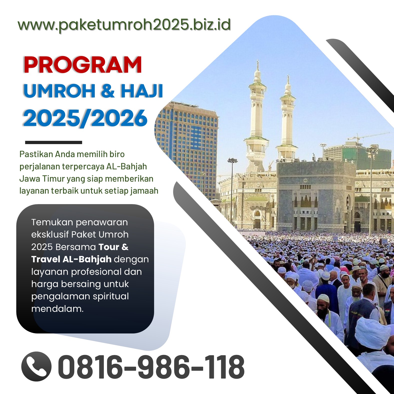 Hub 0816-986-118, Menjalankan umroh dengan ketenangan hati adalah impian setiap jamaah. Paket Umroh Eksklusif 2025 Dampit Malang AL Bahjah menghadirkan layanan terbaik dengan fasilitas premium.