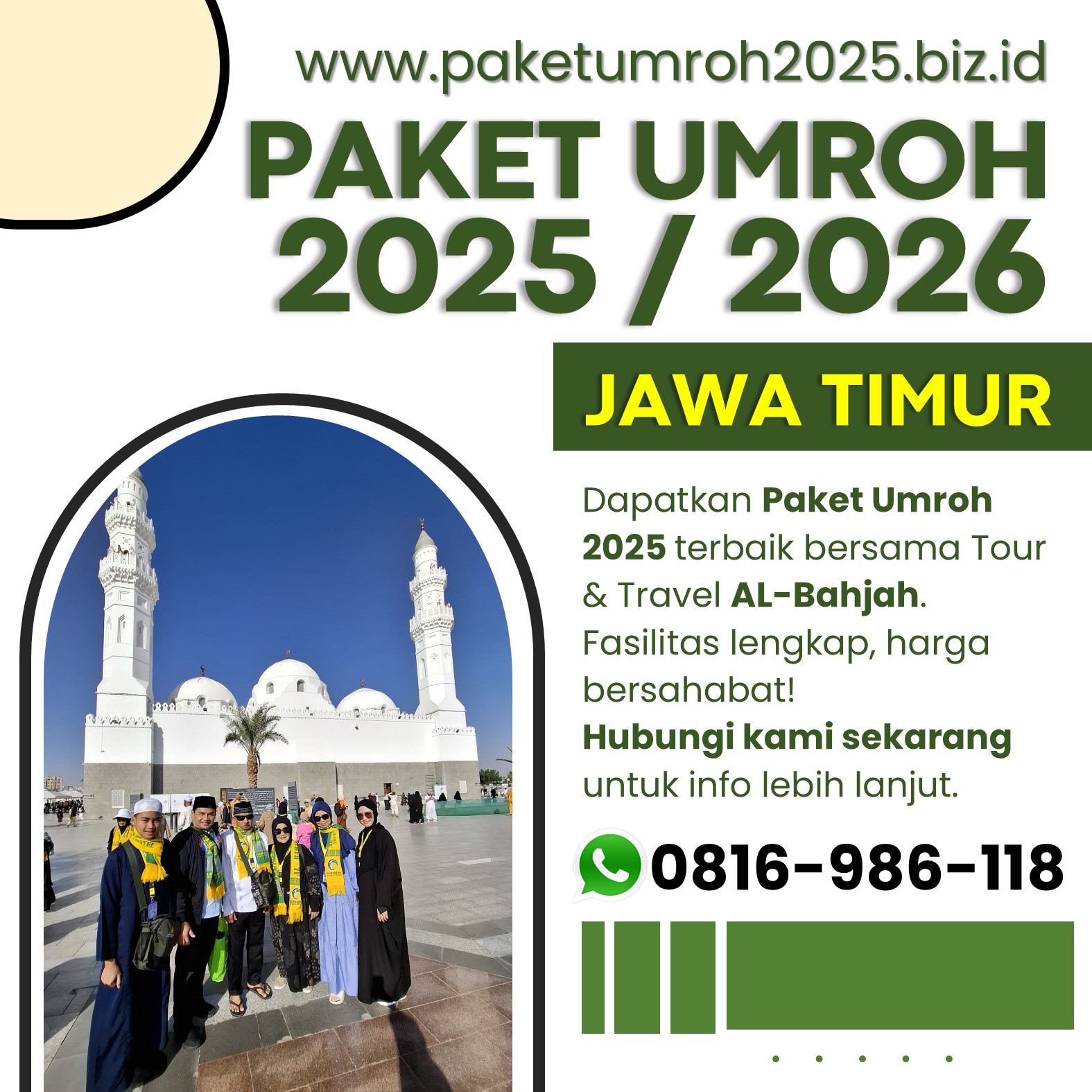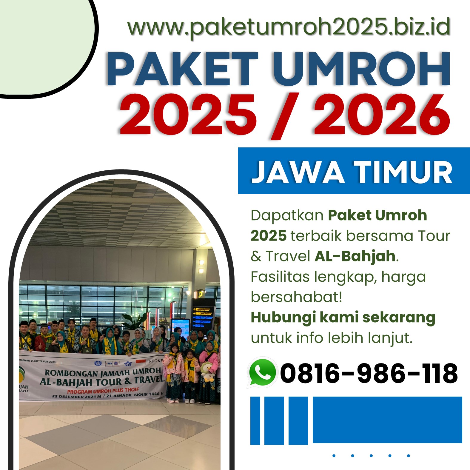 (Hub 0816-986-118) Berangkat ke Tanah Suci untuk menunaikan ibadah umroh adalah impian banyak umat Muslim. Namun, memilih agen umroh terpercaya dengan fasilitas terbaik sangat penting agar perjalanan Anda lancar dan penuh keberkahan. Travel Umroh 2025 Taman Sidoarjo AL Bahjah siap mewujudkan perjalanan spiritual Anda dengan layanan berkualitas dan nyaman.