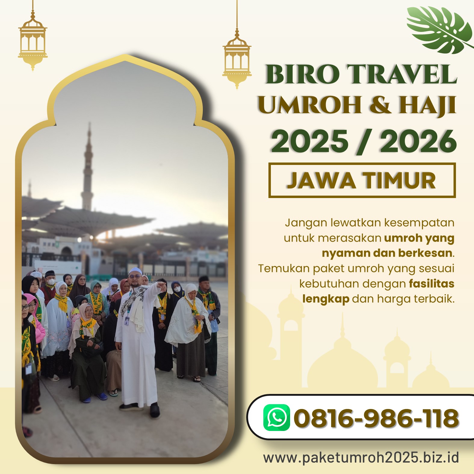 WA 0816-986-118, Ibadah Bersama Keluarga Lebih Berkah ketika dilakukan dengan hati yang ikhlas dan fasilitas yang nyaman. Travel Umroh Keluarga Sanan Kulon dari AL Bahjah hadir untuk memberikan pengalaman terbaik bagi jamaah yang ingin melaksanakan ibadah dengan tenang dan penuh keberkahan. Dengan layanan profesional, perjalanan umroh Anda akan lebih lancar, nyaman, dan berkesan.