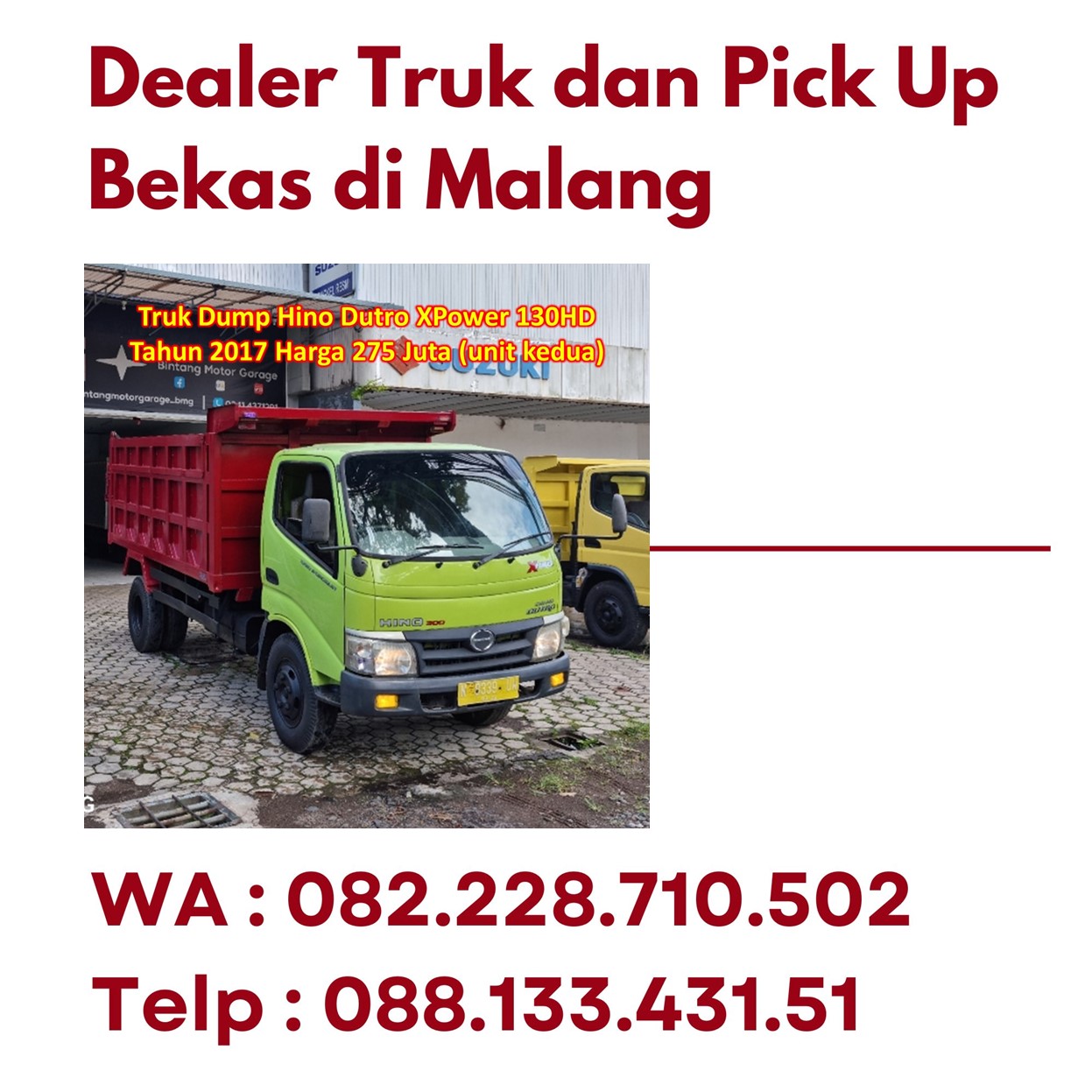 5. Truk Dump Hino Dutro XPower 130HD Tahun 2017 Harga 275 Juta (tersedia 2 unit)