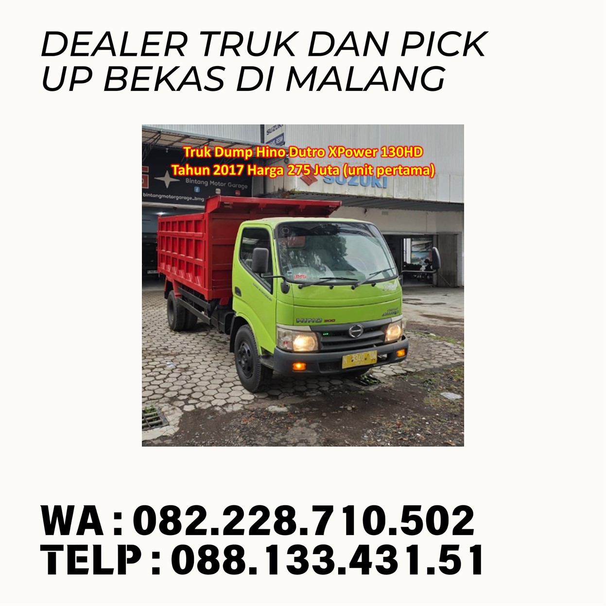4. Truk Dump Hino Dutro XPower 130HD Tahun 2017 Harga 275 Juta (tersedia 2 unit)