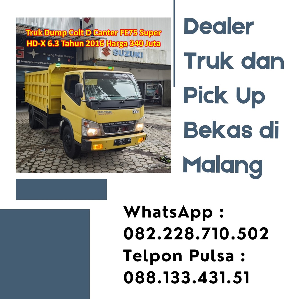 3. Truk Dump ColtD Canter FE75 Super HD-X 6.3 Tahun 2016 Harga 340 Juta