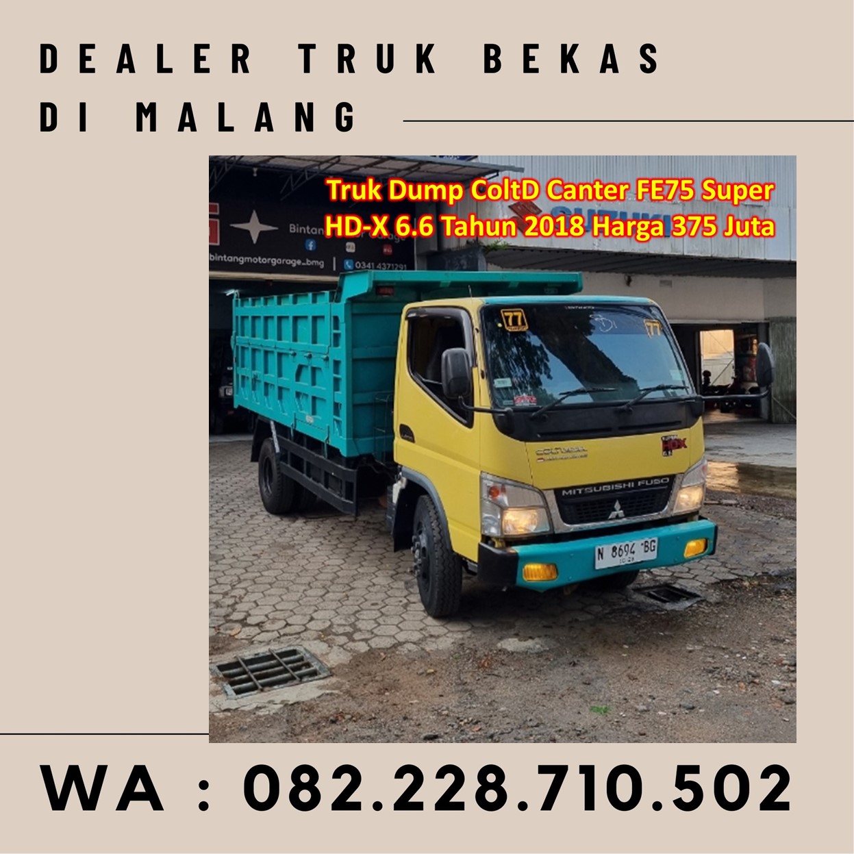 7. Truk Dump ColtD Canter FE75 Super HD-X 6.6 Tahun 2018 Harga 375 Juta