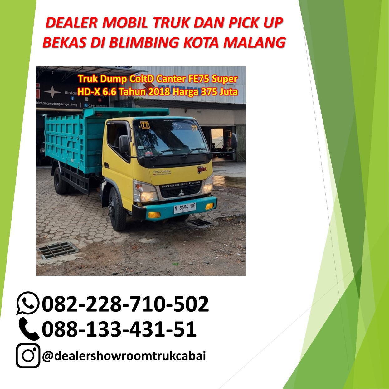 7. Truk Dump ColtD Canter FE75 Super HD-X 6.6 Tahun 2018 Harga 375 Juta