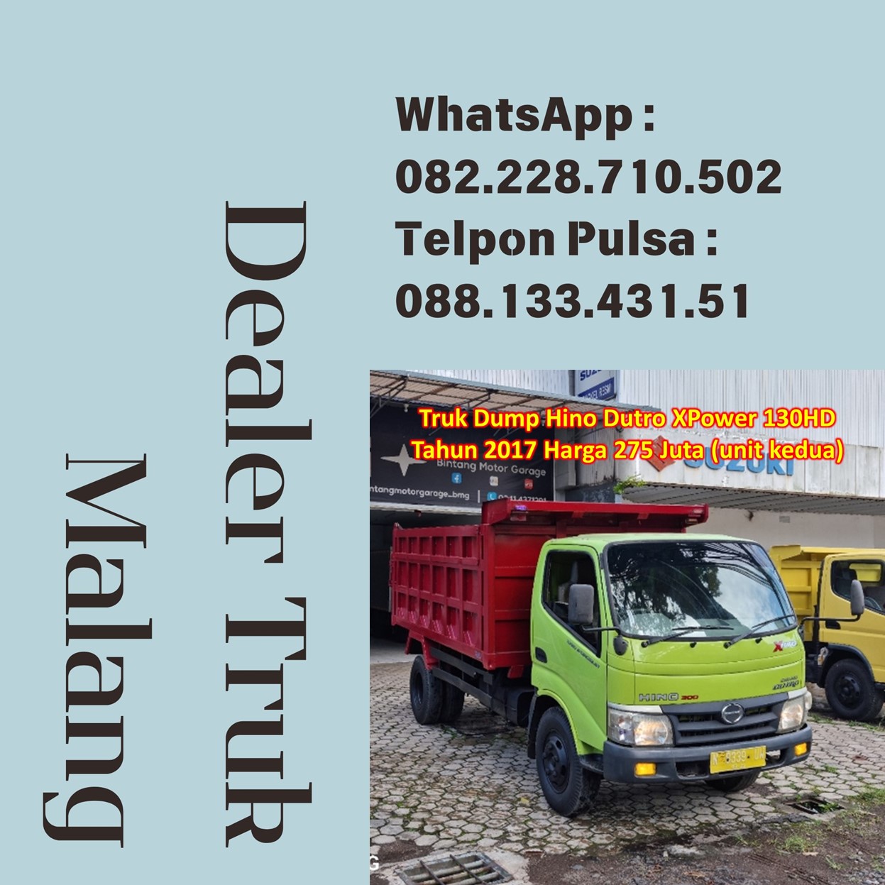 5. Truk Dump Hino Dutro XPower 130HD Tahun 2017 Harga 275 Juta (tersedia 2 unit)