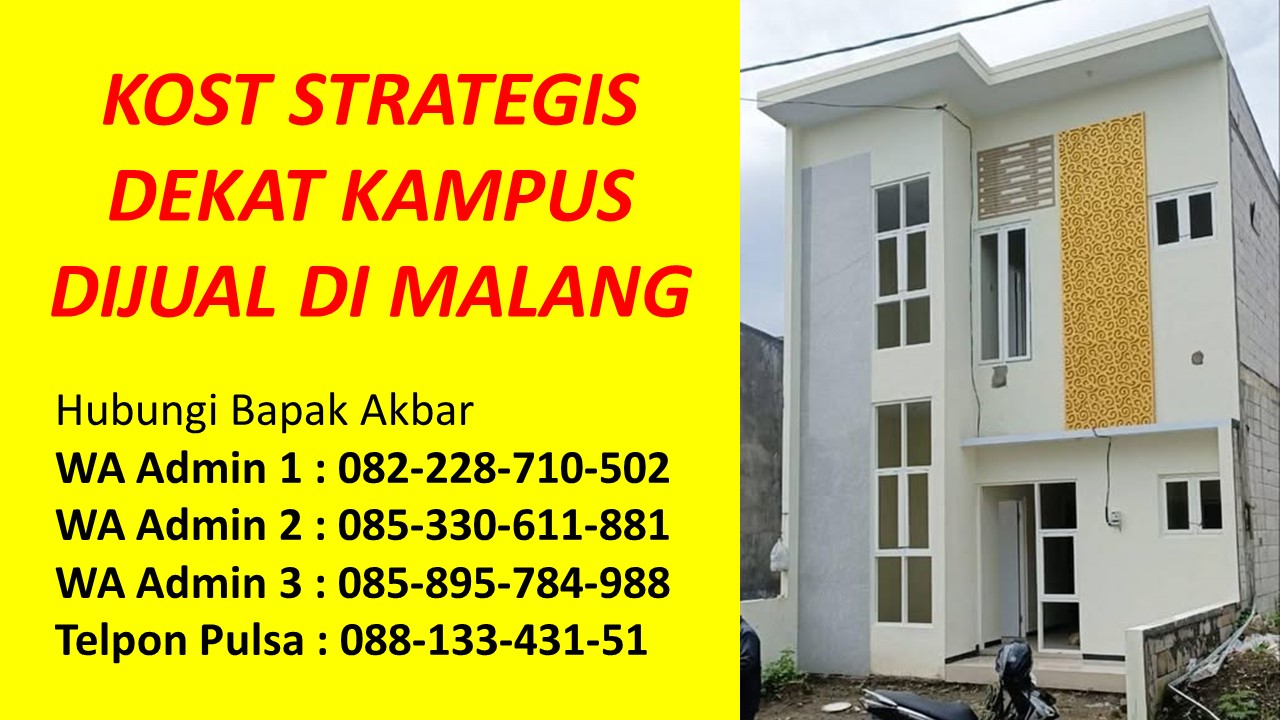 Bapak Akbar menyediakan beragam informasi tentang rumah kost dijual di Malang yang berada di kawasan strategis Dekat Universitas Brawijaya UB, Dekat Universitas Islam Negeri UIN Maulana Malik Ibrahim, Dekat Universitas Negeri UM, Dekat UPBJJ Universitas Terbuka, Dekat Universitas Gajayana UNIGA, Dekat Universitas Islam UNISMA, Dekat Universitas Kanjuruhan UNIKAMA, Dekat Universitas Kristen Cipta Wacana UKCW, Dekat Universitas Merdeka UNMER, Dekat Universitas Muhammadiyah UMM, Dekat Universitas Tribhuwana Tunggadewi UNITRI, Dekat Universitas Widyagama UWG, Dekat Universitas Wisnuwardhana, Dekat BINUS University, Dekat Politeknik Negeri POLINEMA, Dekat Politeknik Unisma, Dekat Politeknik Kota POLTEKOM, Dekat Politeknik Kesehatan Kementerian Kesehatan, Dekat Sekolah Tinggi Agama Islam Ma’had Aly Al-Hikam, Dekat Sekolah Tinggi Bahasa Asing, Dekat Sekolah Tinggi Filsafat Theologi STFT Widya Sasana, Dekat Sekolah Tinggi Teologi Salem, Dekat Sekolah Tinggi Teologi Satyabhakti, Dekat Sekolah Tinggi Ilmu Administrasi, Dekat STIE Indocakti, Dekat STIE Indonesia, Dekat STIE Kertanegara STIEKMA, Dekat STIE Koperasi STIEKOP, Dekat STIE kucecwara ABM, Dekat STIE Pemnas Indonesia, Dekat STIEKN Jaya Negara, Dekat STIKes Kendedes, Dekat Stikes Maharani, Dekat STIKES Widyagama Husada, Dekat Sekolah Tinggi Ilmu Hukum Sunan Giri, Dekat Sekolah Tinggi Informatika dan Komputer Indonesia STIKI, Dekat Sekolah Tinggi Pendidikan Agama Kristen STIPAK Duta Harapan, Dekat Sekolah Tinggi Ilmu Perikanan STIP, Dekat STISOSPOL Waskita Dharma, Dekat Sekolah Tinggi Pastoral IPI, Dekat STT Atlas Nusantara, Dekat STT Budi Utomo, Dekat STT, Dekat STT RRI, Dekat STMIK PPKIA Pradnya Paramita STIMATA, Dekat Akademi Analis Farmasi dan Makanan AKAFARMA Putra Indonesia, Dekat Akademi Analis Kesehatan, Dekat Akademi Farmasi AKFAR Putra Indonesia, Dekat Akademi Kebidanan Brawijaya Husada, Dekat Akademi Kebidanan Wira Husada Nusantara, Dekat Akademi Kebidanan Wijaya Kusuma, Dekat Akademi Keperawatan Panti Waluya, Dekat Akademi Pariwisata dan Perhotelan APARTEL Ganesha, Dekat Institut Teknologi Nasional ITN, Dekat IKIP Budi Utomo, Dekat Institut Pertanian, Dekat Institut Teknologi dan Bisnis Asia, Dekat Institut Teknologi Sains dan Kesehatan RS dr. Soepraoen Kesdam V