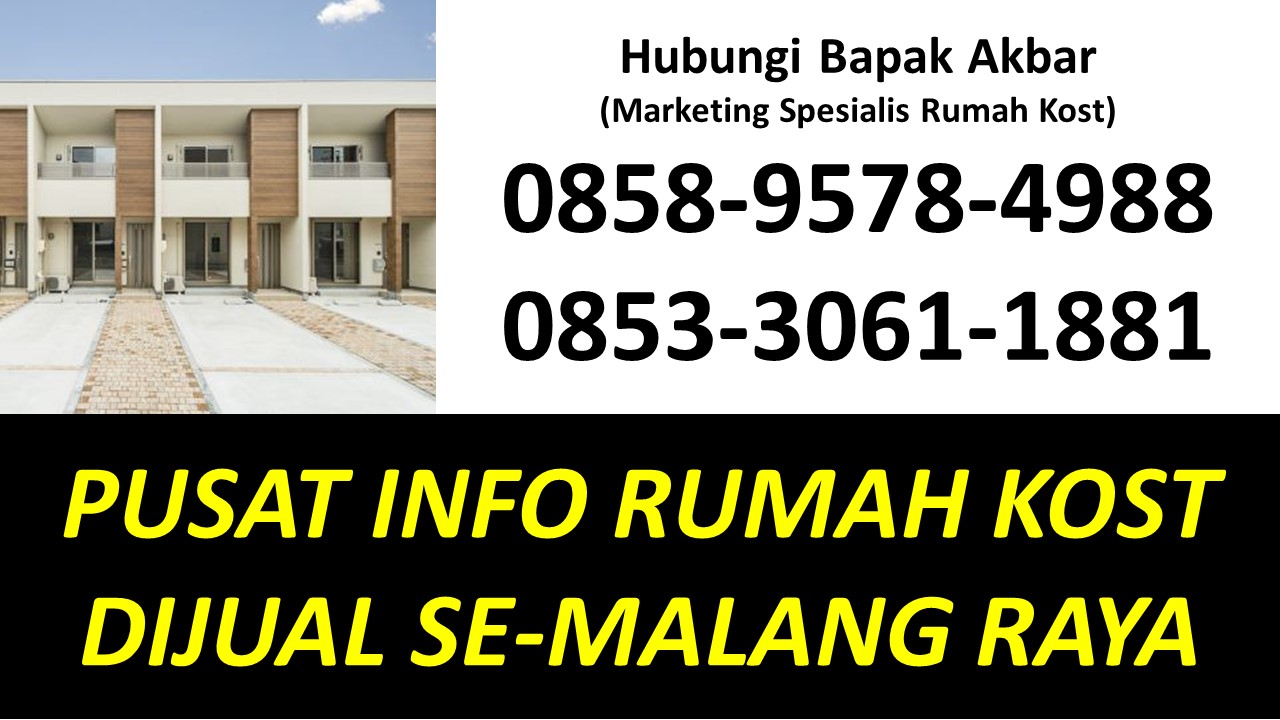 Bapak Akbar menyediakan beragam informasi tentang rumah kost dijual di Malang yang berada di kawasan strategis Dekat Universitas Brawijaya UB, Dekat Universitas Islam Negeri UIN Maulana Malik Ibrahim, Dekat Universitas Negeri UM, Dekat UPBJJ Universitas Terbuka, Dekat Universitas Gajayana UNIGA, Dekat Universitas Islam UNISMA, Dekat Universitas Kanjuruhan UNIKAMA, Dekat Universitas Kristen Cipta Wacana UKCW, Dekat Universitas Merdeka UNMER, Dekat Universitas Muhammadiyah UMM, Dekat Universitas Tribhuwana Tunggadewi UNITRI, Dekat Universitas Widyagama UWG, Dekat Universitas Wisnuwardhana, Dekat BINUS University, Dekat Politeknik Negeri POLINEMA, Dekat Politeknik Unisma, Dekat Politeknik Kota POLTEKOM, Dekat Politeknik Kesehatan Kementerian Kesehatan, Dekat Sekolah Tinggi Agama Islam Ma’had Aly Al-Hikam, Dekat Sekolah Tinggi Bahasa Asing, Dekat Sekolah Tinggi Filsafat Theologi STFT Widya Sasana, Dekat Sekolah Tinggi Teologi Salem, Dekat Sekolah Tinggi Teologi Satyabhakti, Dekat Sekolah Tinggi Ilmu Administrasi, Dekat STIE Indocakti, Dekat STIE Indonesia, Dekat STIE Kertanegara STIEKMA, Dekat STIE Koperasi STIEKOP, Dekat STIE kucecwara ABM, Dekat STIE Pemnas Indonesia, Dekat STIEKN Jaya Negara, Dekat STIKes Kendedes, Dekat Stikes Maharani, Dekat STIKES Widyagama Husada, Dekat Sekolah Tinggi Ilmu Hukum Sunan Giri, Dekat Sekolah Tinggi Informatika dan Komputer Indonesia STIKI, Dekat Sekolah Tinggi Pendidikan Agama Kristen STIPAK Duta Harapan, Dekat Sekolah Tinggi Ilmu Perikanan STIP, Dekat STISOSPOL Waskita Dharma, Dekat Sekolah Tinggi Pastoral IPI, Dekat STT Atlas Nusantara, Dekat STT Budi Utomo, Dekat STT, Dekat STT RRI, Dekat STMIK PPKIA Pradnya Paramita STIMATA, Dekat Akademi Analis Farmasi dan Makanan AKAFARMA Putra Indonesia, Dekat Akademi Analis Kesehatan, Dekat Akademi Farmasi AKFAR Putra Indonesia, Dekat Akademi Kebidanan Brawijaya Husada, Dekat Akademi Kebidanan Wira Husada Nusantara, Dekat Akademi Kebidanan Wijaya Kusuma, Dekat Akademi Keperawatan Panti Waluya, Dekat Akademi Pariwisata dan Perhotelan APARTEL Ganesha, Dekat Institut Teknologi Nasional ITN, Dekat IKIP Budi Utomo, Dekat Institut Pertanian, Dekat Institut Teknologi dan Bisnis Asia, Dekat Institut Teknologi Sains dan Kesehatan RS dr. Soepraoen Kesdam V