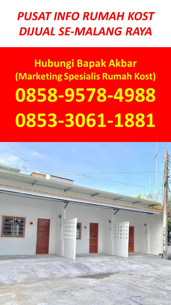 Bapak Akbar menyediakan beragam informasi tentang rumah kost dijual di Malang yang berada di kawasan strategis Dekat Universitas Brawijaya UB, Dekat Universitas Islam Negeri UIN Maulana Malik Ibrahim, Dekat Universitas Negeri UM, Dekat UPBJJ Universitas Terbuka, Dekat Universitas Gajayana UNIGA, Dekat Universitas Islam UNISMA, Dekat Universitas Kanjuruhan UNIKAMA, Dekat Universitas Kristen Cipta Wacana UKCW, Dekat Universitas Merdeka UNMER, Dekat Universitas Muhammadiyah UMM, Dekat Universitas Tribhuwana Tunggadewi UNITRI, Dekat Universitas Widyagama UWG, Dekat Universitas Wisnuwardhana, Dekat BINUS University, Dekat Politeknik Negeri POLINEMA, Dekat Politeknik Unisma, Dekat Politeknik Kota POLTEKOM, Dekat Politeknik Kesehatan Kementerian Kesehatan, Dekat Sekolah Tinggi Agama Islam Ma’had Aly Al-Hikam, Dekat Sekolah Tinggi Bahasa Asing, Dekat Sekolah Tinggi Filsafat Theologi STFT Widya Sasana, Dekat Sekolah Tinggi Teologi Salem, Dekat Sekolah Tinggi Teologi Satyabhakti, Dekat Sekolah Tinggi Ilmu Administrasi, Dekat STIE Indocakti, Dekat STIE Indonesia, Dekat STIE Kertanegara STIEKMA, Dekat STIE Koperasi STIEKOP, Dekat STIE kucecwara ABM, Dekat STIE Pemnas Indonesia, Dekat STIEKN Jaya Negara, Dekat STIKes Kendedes, Dekat Stikes Maharani, Dekat STIKES Widyagama Husada, Dekat Sekolah Tinggi Ilmu Hukum Sunan Giri, Dekat Sekolah Tinggi Informatika dan Komputer Indonesia STIKI, Dekat Sekolah Tinggi Pendidikan Agama Kristen STIPAK Duta Harapan, Dekat Sekolah Tinggi Ilmu Perikanan STIP, Dekat STISOSPOL Waskita Dharma, Dekat Sekolah Tinggi Pastoral IPI, Dekat STT Atlas Nusantara, Dekat STT Budi Utomo, Dekat STT, Dekat STT RRI, Dekat STMIK PPKIA Pradnya Paramita STIMATA, Dekat Akademi Analis Farmasi dan Makanan AKAFARMA Putra Indonesia, Dekat Akademi Analis Kesehatan, Dekat Akademi Farmasi AKFAR Putra Indonesia, Dekat Akademi Kebidanan Brawijaya Husada, Dekat Akademi Kebidanan Wira Husada Nusantara, Dekat Akademi Kebidanan Wijaya Kusuma, Dekat Akademi Keperawatan Panti Waluya, Dekat Akademi Pariwisata dan Perhotelan APARTEL Ganesha, Dekat Institut Teknologi Nasional ITN, Dekat IKIP Budi Utomo, Dekat Institut Pertanian, Dekat Institut Teknologi dan Bisnis Asia, Dekat Institut Teknologi Sains dan Kesehatan RS dr. Soepraoen Kesdam V